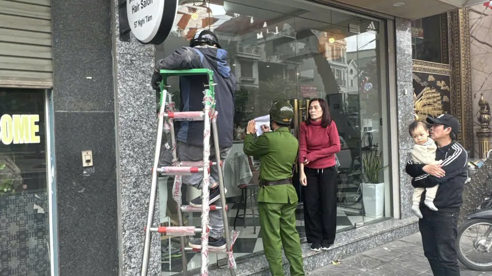 Lực lượng chức năng phường Tây Hồ xử lý các trường hợp lắp đặt mái che, mái vẩy sai quy định.