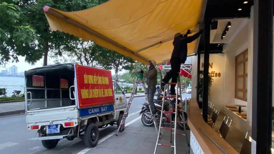 Công an phường Tây Hồ kiên quyết xử lý các trường hợp lắp đặt mái che sai quy định.