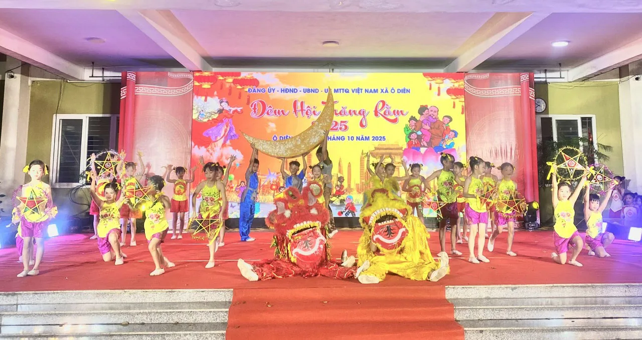 Theo Kế hoạch số 71/KH-UBND về việc tổ chức các hoạt động Tết Trung thu năm 2025 trên địa bàn xã, UBND xã Ô Diên chỉ đạo các thôn, cụm dân cư, tổ dân phố đồng loạt tổ chức Tết Trung thu từ ngày 4 – 6/10 (tức 13 – 15/8 âm lịch), với nhiều hình thức phong phú: phát quà cho trẻ em, rước đèn, thi mâm ngũ quả, tổ chức trò chơi dân gian, văn nghệ, tạo không khí vui tươi, gắn kết cộng đồng.