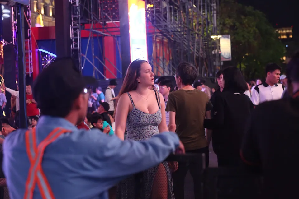 Bên cạnh sự háo hức của người dân TP Hồ Chí Minh, niềm vui đón năm mới còn lan tỏa đến những du khách quốc tế đang có mặt tại đây. Chị Maria, một du khách nước ngoài lần đầu tiên đặt chân đến Việt Nam, đã bày tỏ sự ngỡ ngàng và thích thú trước sự náo nhiệt của thành phố trong đêm giao thừa.
