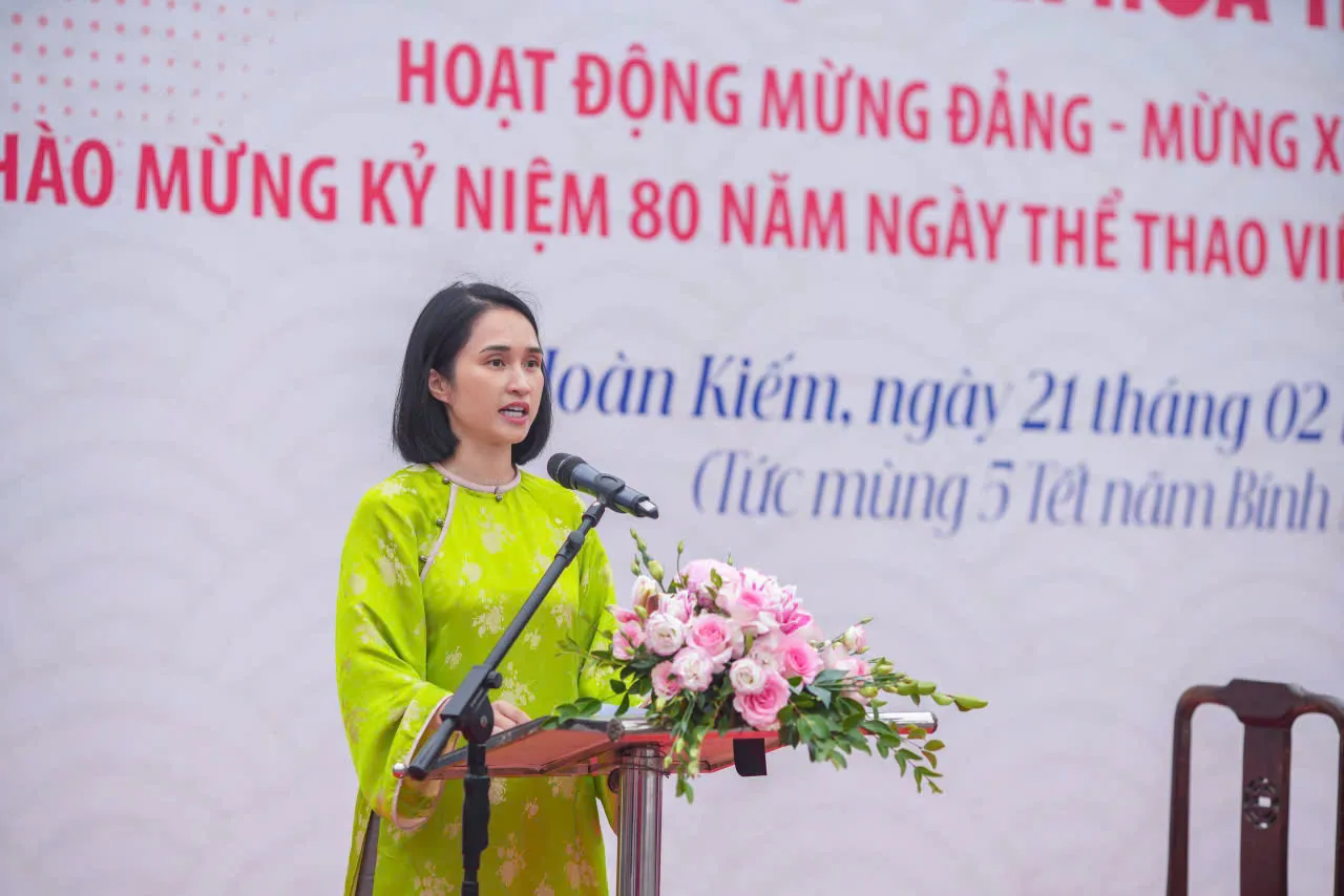 Bà Nguyễn Hồng Trang - Uỷ viên Ban Thường vụ Đảng uỷ, Phó Chủ tịch Thường trực UBND phường Hoàn Kiếm phát biểu khai mạc.