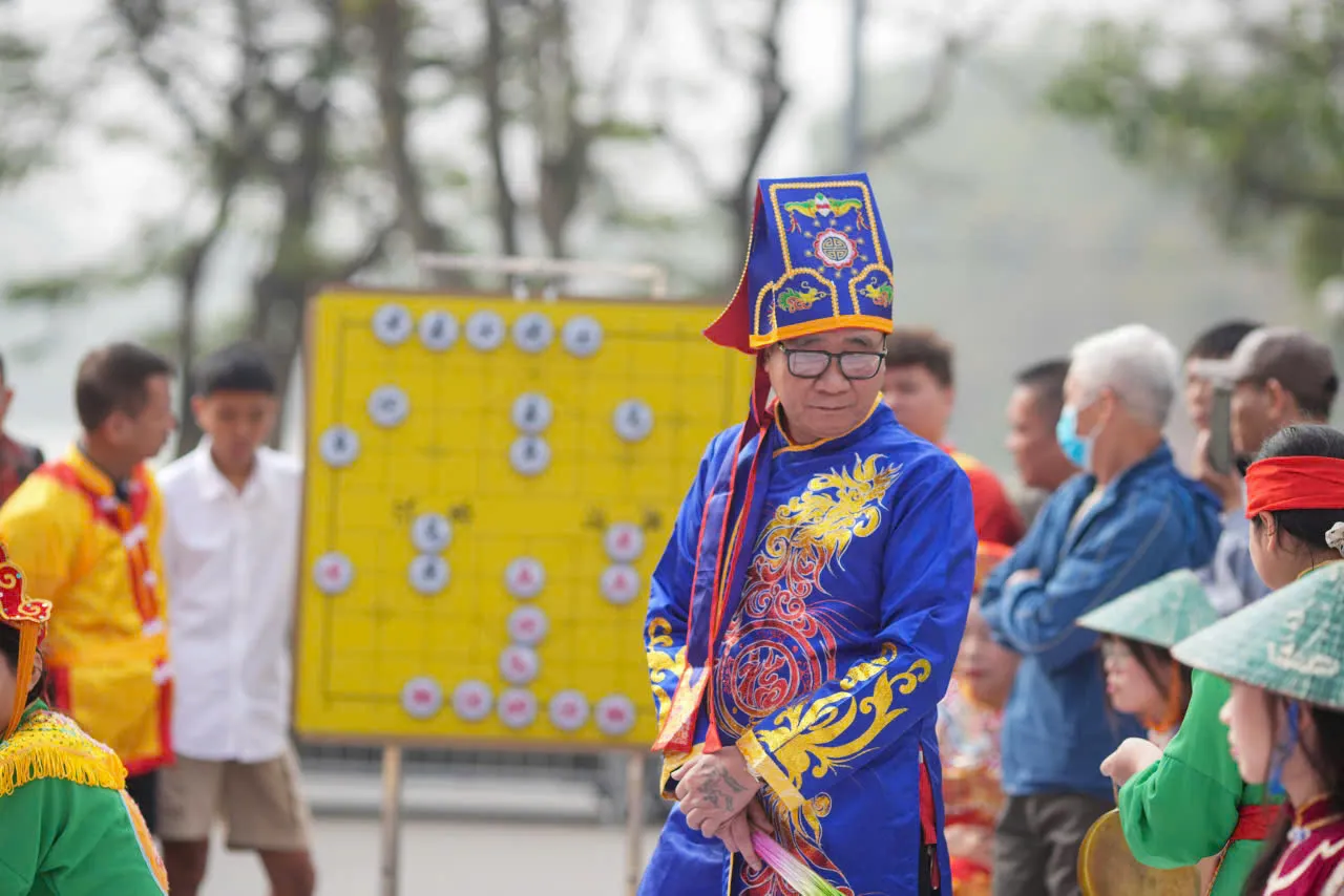 Khác với cờ tướng thông thường, cờ người là sự kết hợp giữa thi đấu trí tuệ và trình diễn nghệ thuật. Trên “bàn cờ” được kẻ ô trực tiếp tại quảng trường, mỗi quân cờ là một người thật trong trang phục truyền thống, di chuyển theo nước đi của các kỳ thủ. Những bước tiến, thoái, công, thủ đều được thể hiện bằng ngôn ngữ hình thể và thần thái, tạo nên một bức tranh sinh động giữa lòng phố cổ.