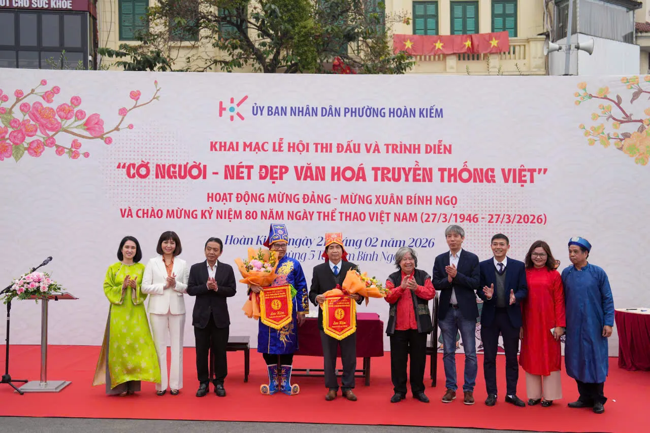 Kinhtedothi - Sáng 21/2 (mùng 5 Tết Bính Ngọ), tại khu vực Quảng trường Đông Kinh Nghĩa Thục, phường Hoàn Kiếm đã tổ chức Lễ hội trình diễn và thi đấu “Cờ người – Nét đẹp văn hóa truyền thống Việt” trong không khí trang trọng, rộn ràng đầu xuân. Sự kiện là hoạt động thiết thực chào mừng thành công Đại hội XIV của Đảng; kỷ niệm 96 năm Ngày thành lập Đảng Cộng sản Việt Nam (3/2/1930 – 3/2/2026); hướng tới 80 năm Ngày Thể thao Việt Nam (27/3/1946 – 27/3/2026) và mừng Xuân Bính Ngọ 2026.