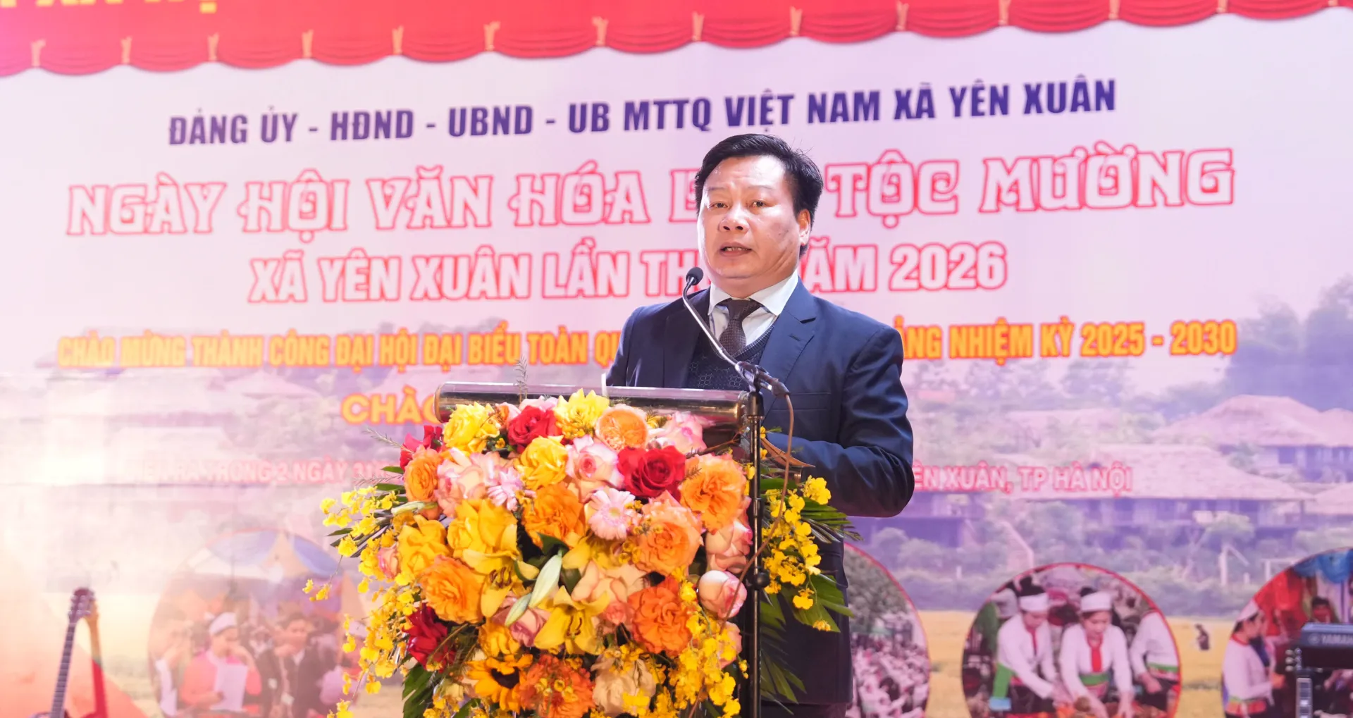 Phát biểu tại lễ khai mạc, Chủ tịch UBND xã Yên Xuân Phùng Khắc Sơn cho biết, “Ngày hội Văn hóa dân tộc Mường xã Yên Xuân lần thứ I năm 2026” không chỉ là dịp tôn vinh, bảo tồn và phát huy những giá trị văn hóa truyền thống tốt đẹp của đồng bào Mường, mà còn là cơ hội để quảng bá hình ảnh con người, tiềm năng du lịch và sản phẩm đặc trưng của địa phương. Văn hóa là nền tảng tinh thần, đồng thời là nguồn lực nội sinh quan trọng cho phát triển kinh tế – xã hội.