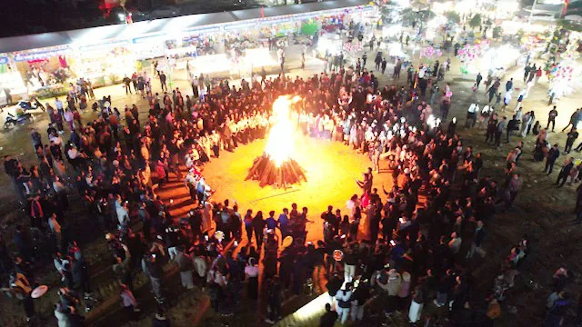Bí thư Đảng uỷ, Chủ tịch HĐND xã Yên Xuân Mạc Đình Minh đã thắp sáng ngọn lửa đoàn kết, ngọn lửa tri thức, ngọn lửa khát khao vươn mình phát triển của cán bộ và toàn thể bà con các dân tộc trên địa bàn xã Yên Xuân trong " Ngày hội văn hóa dân tộc Mường" xã Yên Xuân lần I, năm 2026. Ảnh: Công Phương.