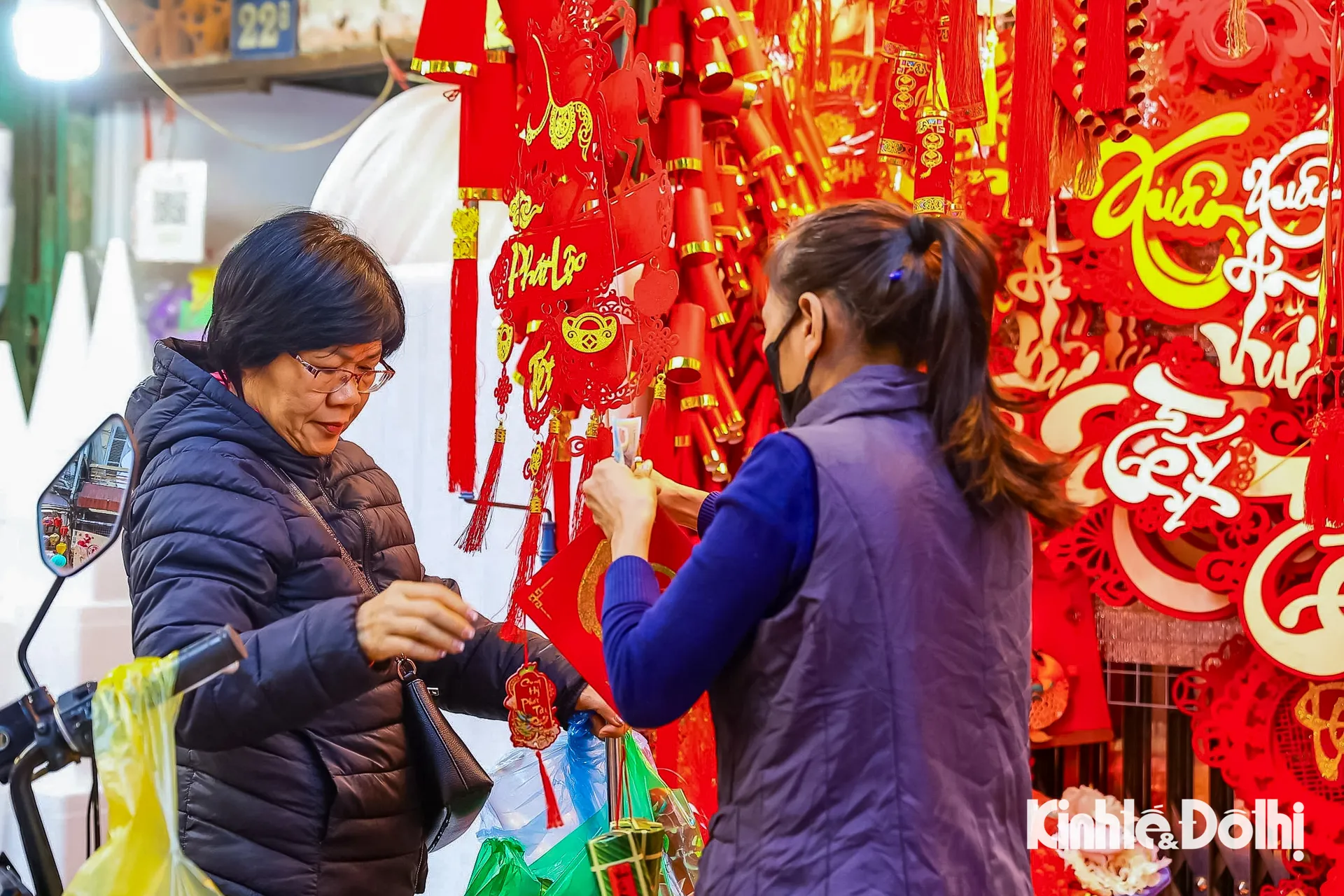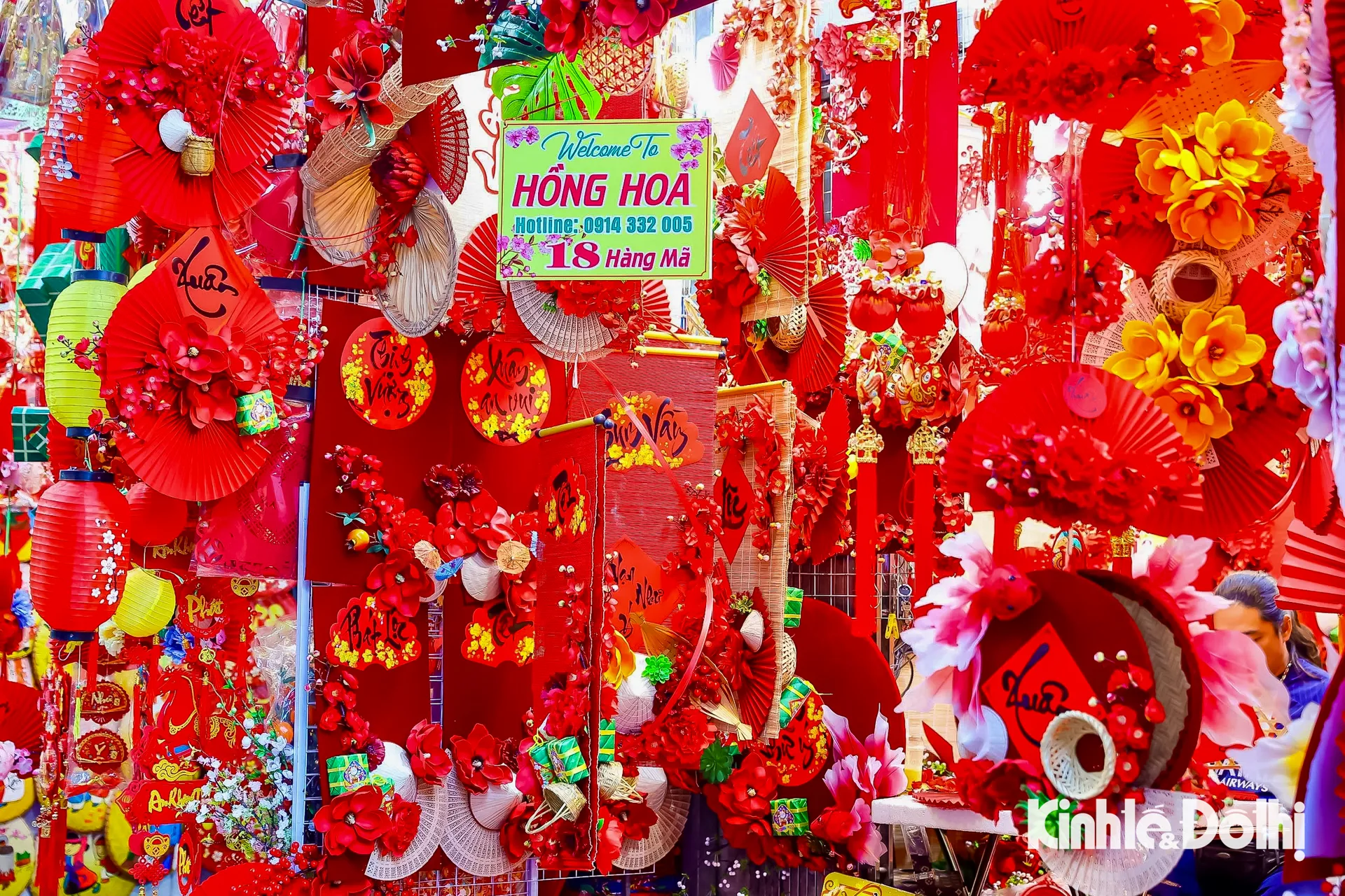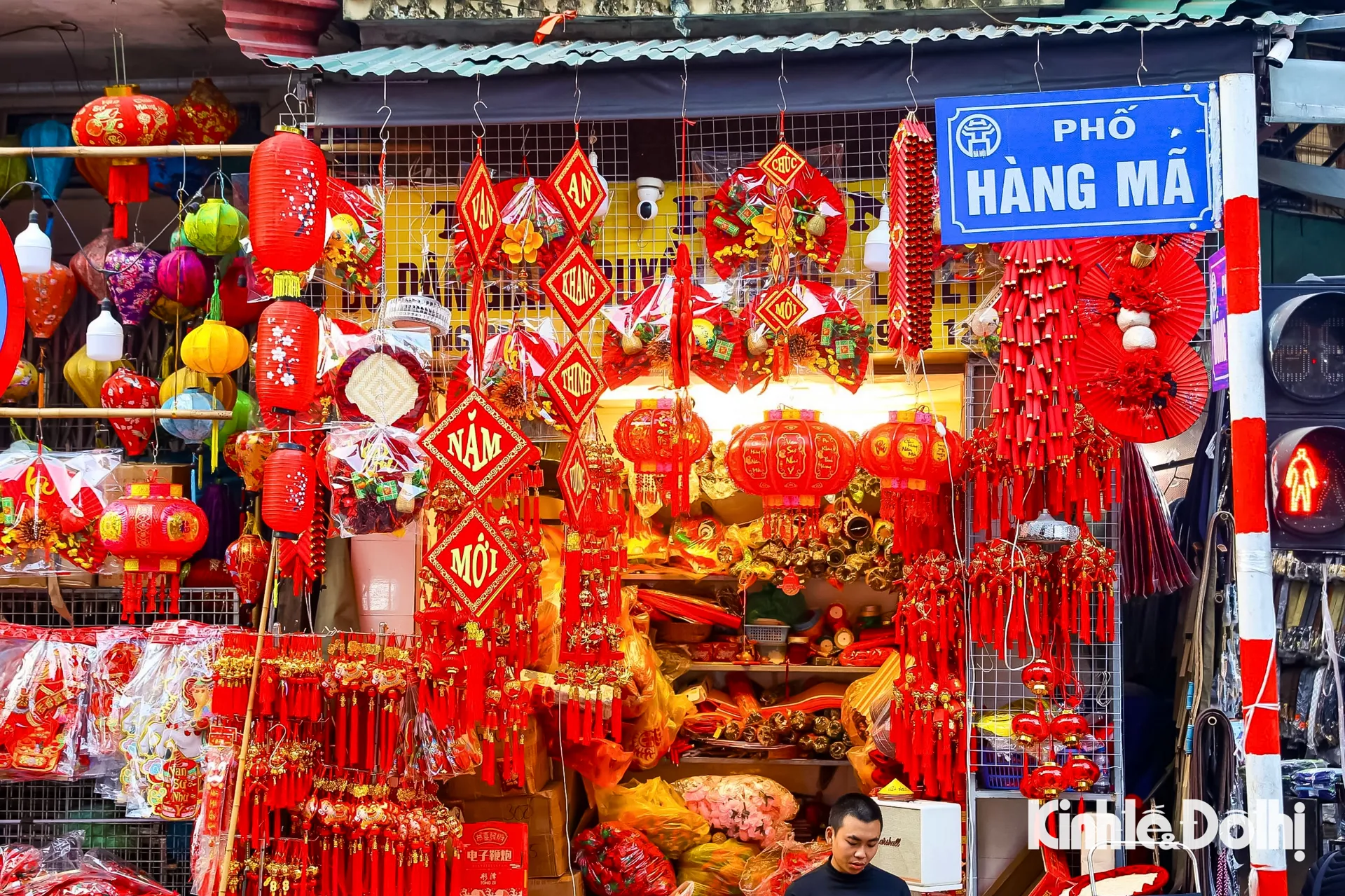 Kinhtedothi - Từ đèn lồng, bao lì xì, dây treo may mắn đến câu đối đỏ, sắc xuân hiện hữu rõ nét trên phố Hàng Mã, tạo nên bức tranh mua sắm nhộn nhịp, báo hiệu mùa Tết đang đến rất gần.