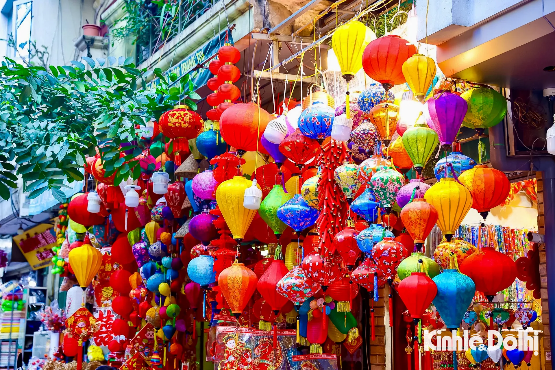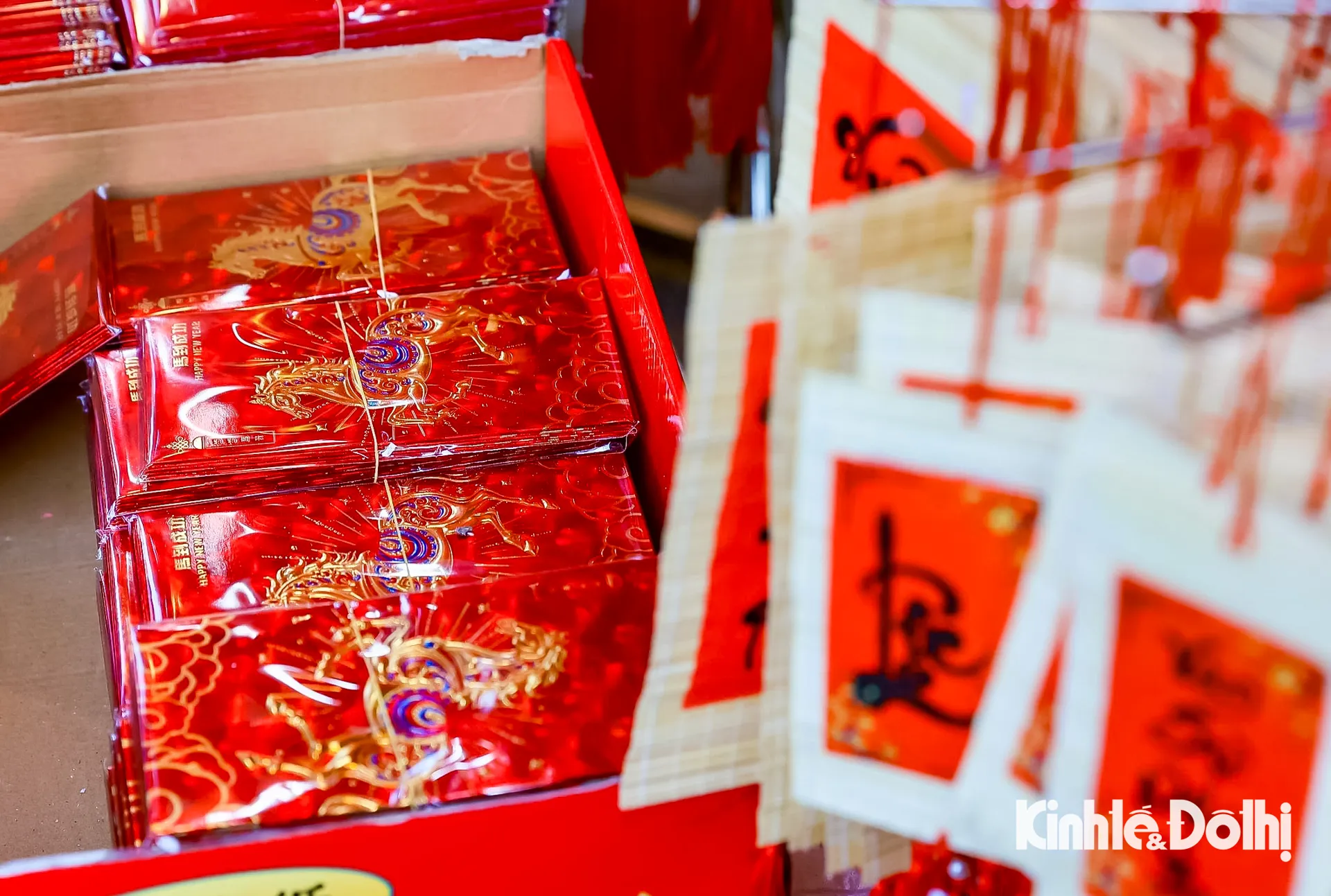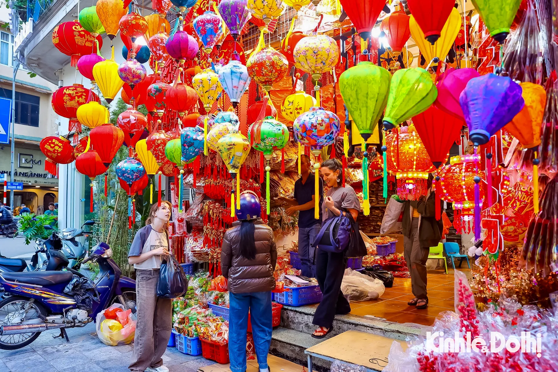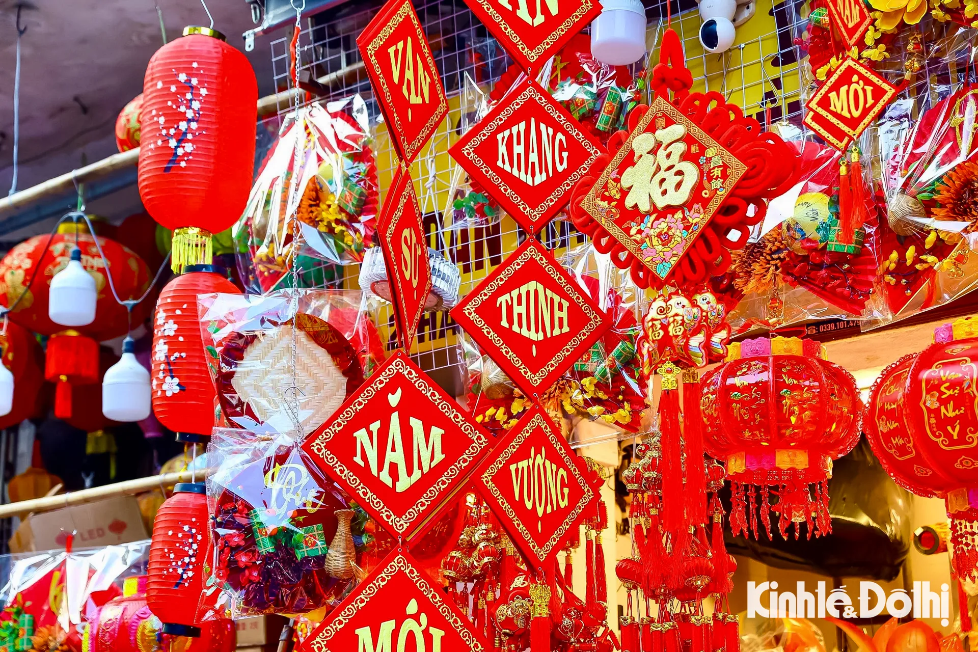 Kinhtedothi - Từ đèn lồng, bao lì xì, dây treo may mắn đến câu đối đỏ, sắc xuân hiện hữu rõ nét trên phố Hàng Mã, tạo nên bức tranh mua sắm nhộn nhịp, báo hiệu mùa Tết đang đến rất gần.