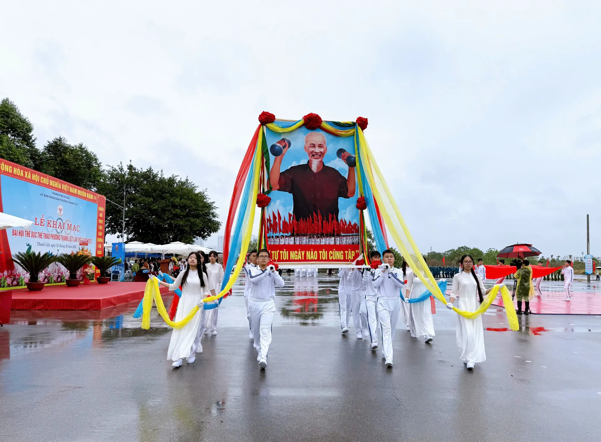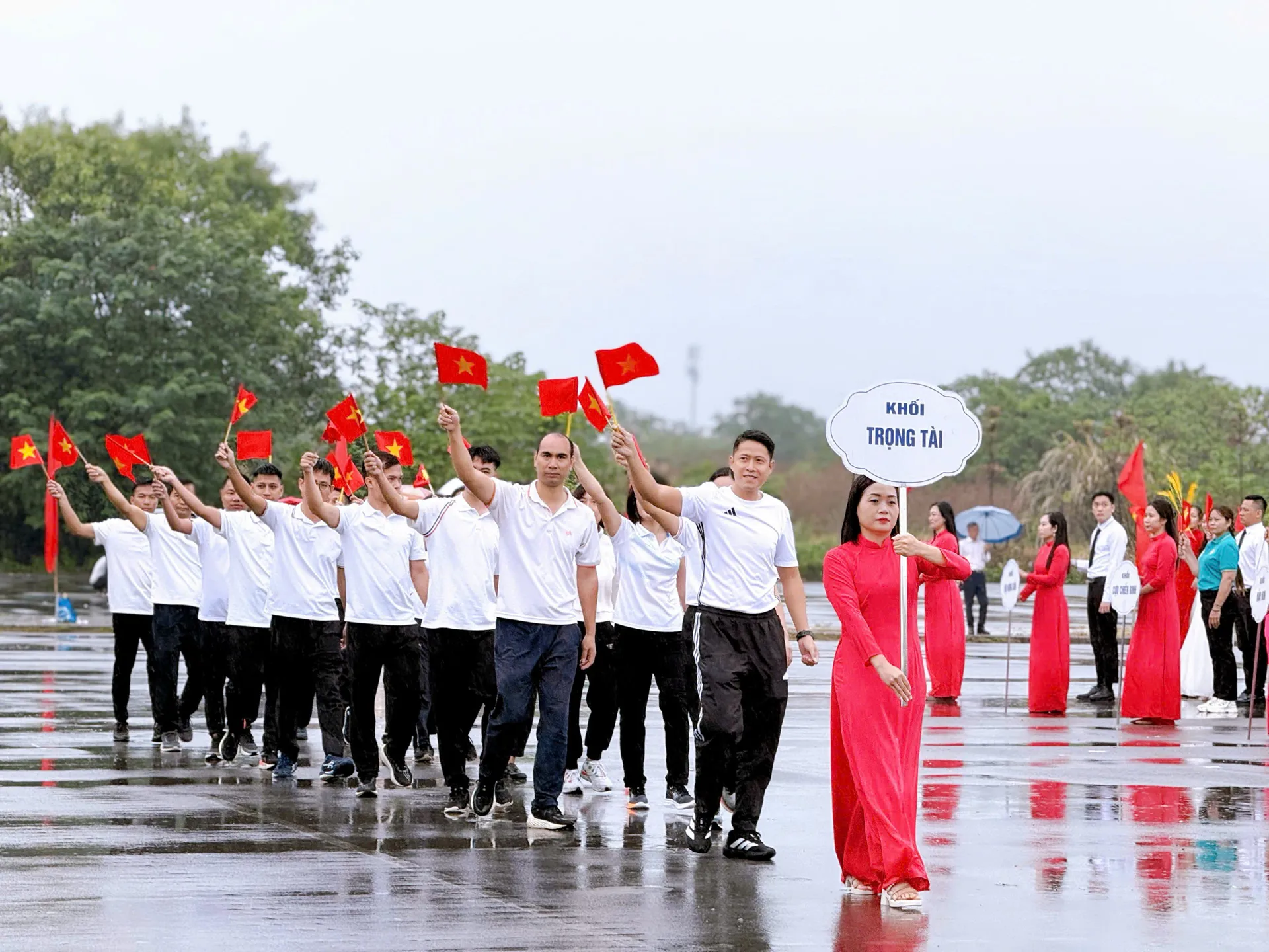 Mỗi khối diễu hành là một sắc màu, một biểu tượng của tinh thần “Khoẻ để xây dựng và bảo vệ Tổ quốc”. Lá cờ Tổ quốc tung bay trên nền nhạc hào hùng, tiếng vỗ tay vang vọng khắp quảng trường, khiến không khí ngày hội thêm phần thiêng liêng, sôi nổi và tràn đầy khí thế.