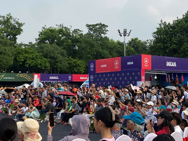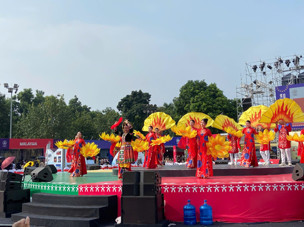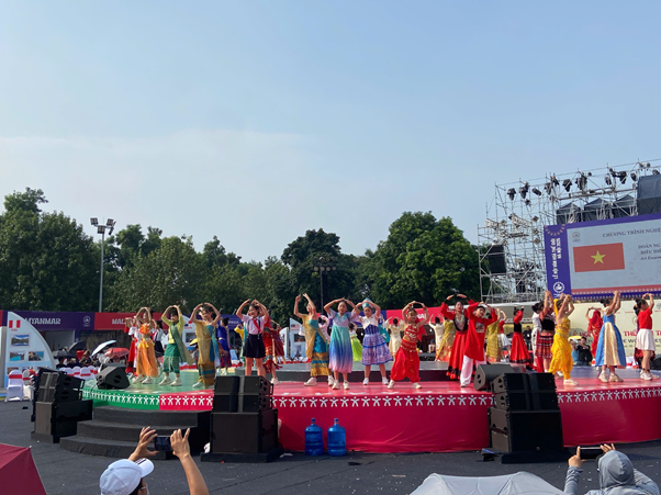 Sau phần trình diễn của đoàn Việt Nam, sân khấu bùng nổ với vũ điệu sôi động từ Indonesia. Ngay sau đó, nghệ sĩ Ấn Độ lại mang đến sắc thái khác biệt: từng cử chỉ mềm mại, ánh mắt quyến rũ trên nền nhạc pha trộn giữa truyền thống và hiện đại.