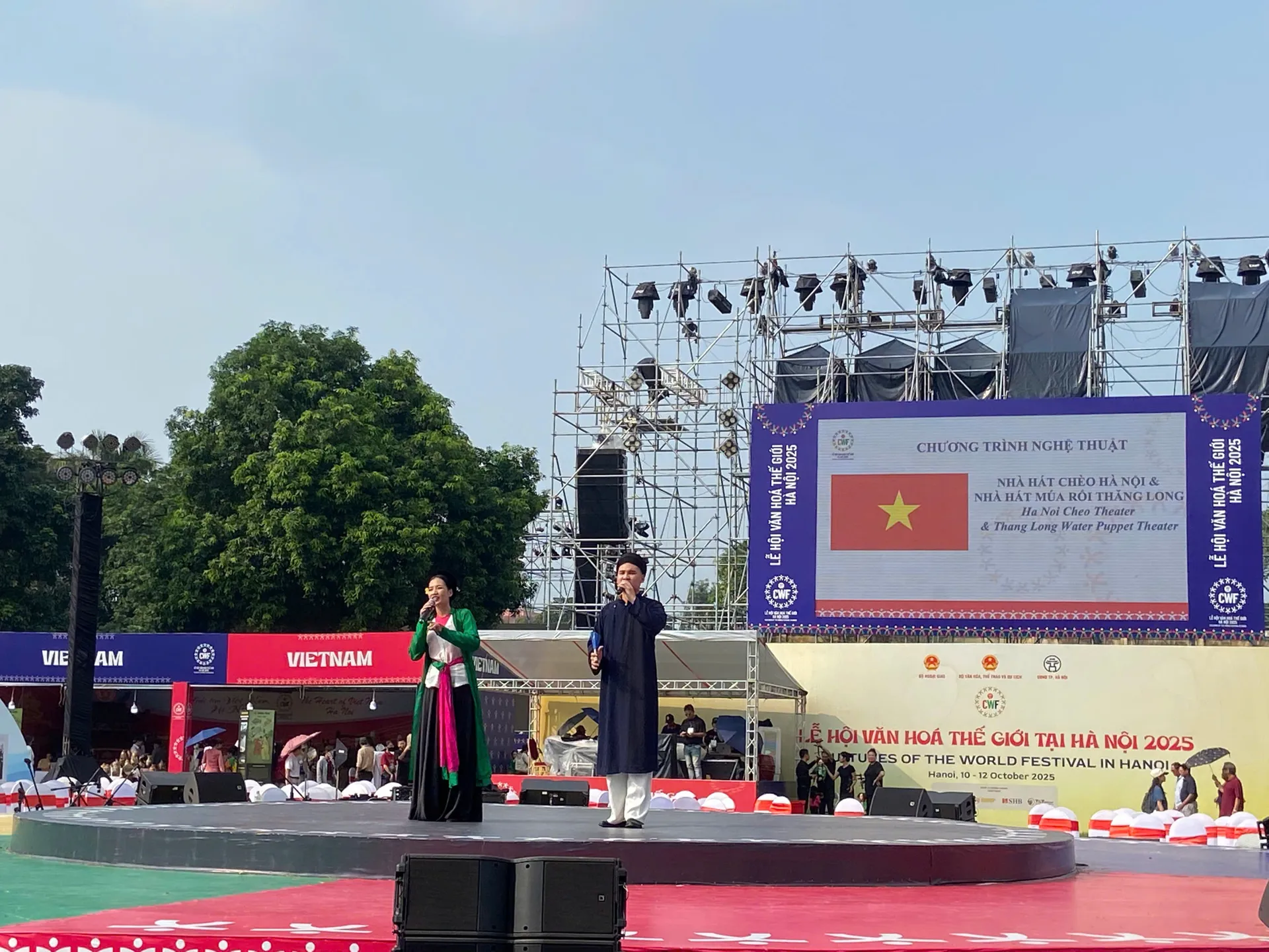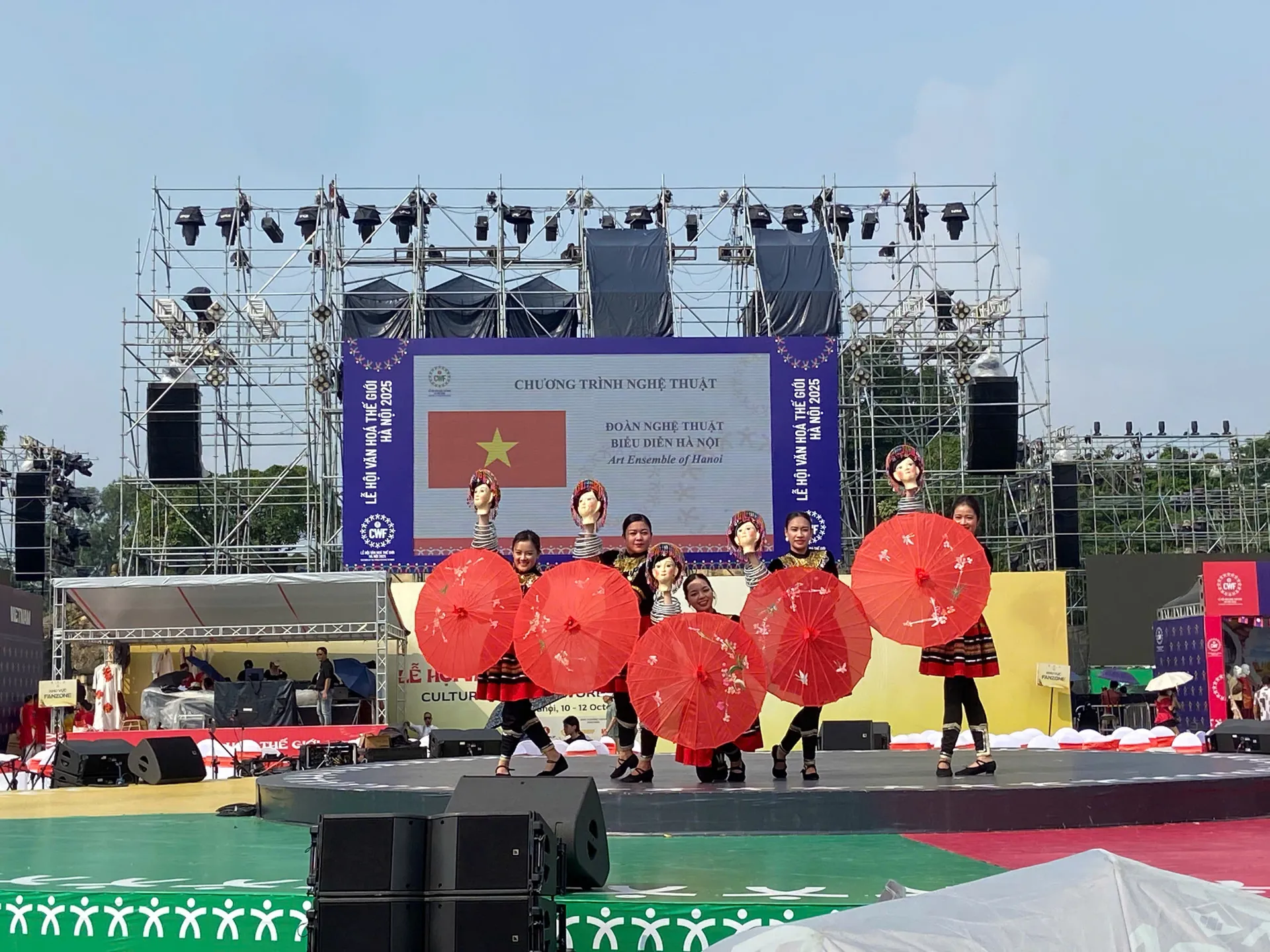 Chiều 12/10, Hoàng thành Thăng Long rộn ràng đón hàng trăm khán giả trong nước và bạn bè quốc tế. Giữa không gian cổ kính, sân khấu được dựng giữa lòng di tích trở thành nơi hội tụ của những giai điệu dân tộc, điệu múa truyền thống và màn trình diễn đậm bản sắc từ nhiều quốc gia.