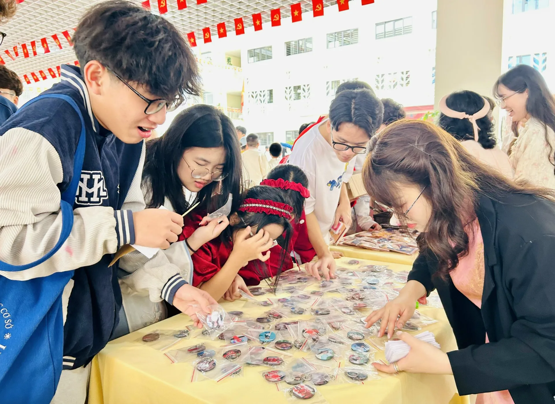 Em Trần Hoàng Ngân là học sinh lớp 8A Trường THCS Hoàng Mai chia sẻ: “Chúng em rất vui khi được trải nghiệm nhảy sạp, bán các mặt hàng sáng tạo như móc chìa khóa có in hình các thầy cô, món ăn truyền thống như nem chua. Em học được cách giao tiếp và ứng xử khi bán hàng để thu hút nhiều người mua. Từ lúc 10h gian hàng của lớp em đã bán hết sản phẩm, số tiền lãi sẽ được dùng để mang đi làm từ thiện cho những người có hoàn cảnh khó khăn”.