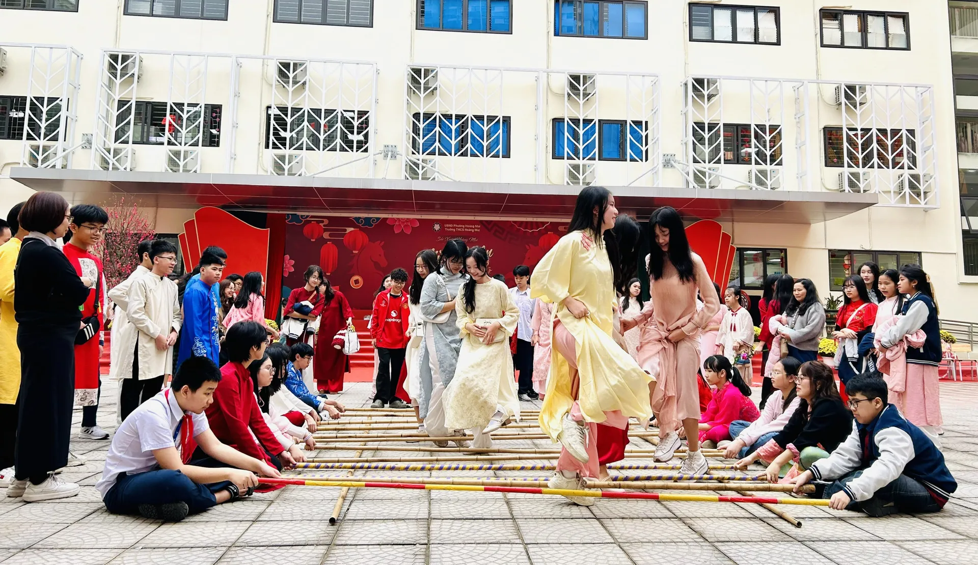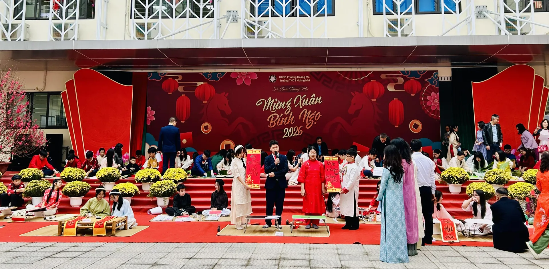 Ngày 13/2, Trường THCS Hoàng Mai (phường Hoàng Mai, TP Hà Nội) tổ chức chương trình “Sắc xuân Hoàng Mai 2026” với sự tham gia của 1.130 học sinh 29 lớp, giáo viên toàn trường, phụ huynh học sinh và cựu học sinh.