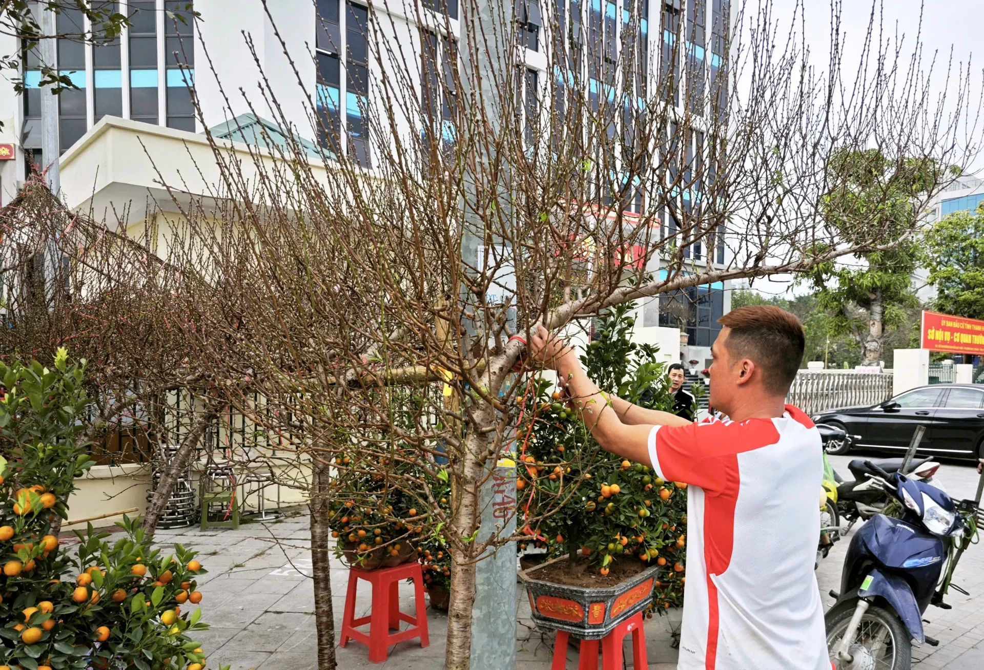 Kinhtedothi - Những ngày cận kề Tết Nguyên đán, không khí Xuân lan tỏa rõ nét khắp khu vực đô thị trung tâm xứ Thanh. Từ các không gian công cộng, những tuyến phố chính đến từng khu dân cư, đào, quất cùng nhiều loại hoa Xuân rực rỡ được bày bán, trưng bày khắp nơi, góp phần điểm tô diện mạo đô thị thêm tươi mới, rộn ràng trong thời khắc chuyển giao của năm cũ và năm mới.