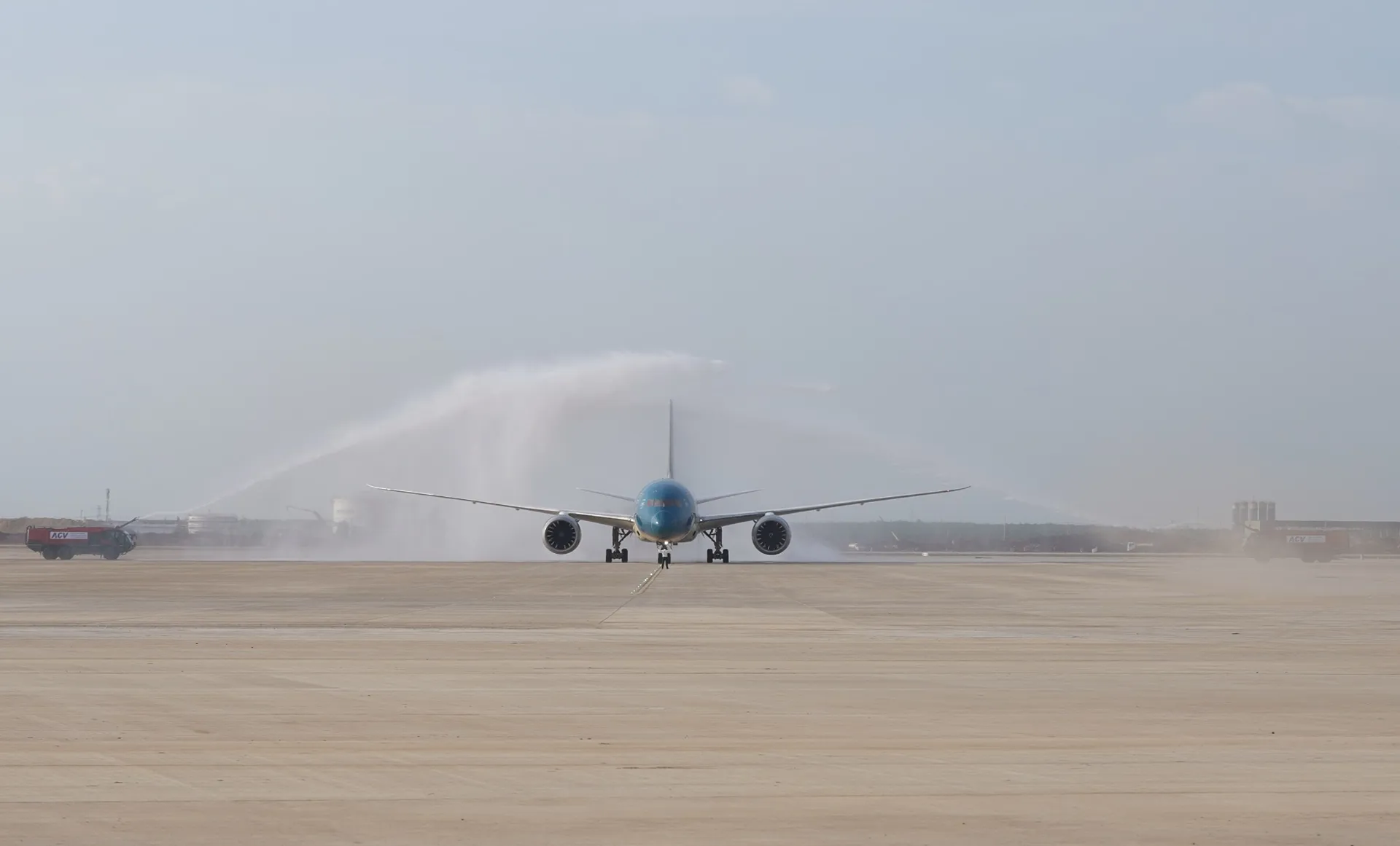 Chuyến bay mang số hiệu VN5001 được chào đón bằng nghi thức phun vòi rồng
