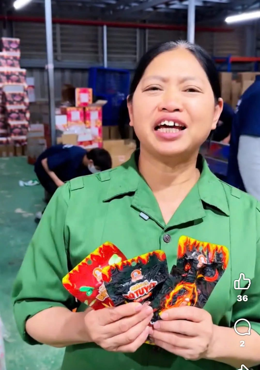 Hình ảnh mộc mạc của "bà trùm" đồ ăn vặt Đỗ Thị Tuyết trong video giới thiệu sản phẩm