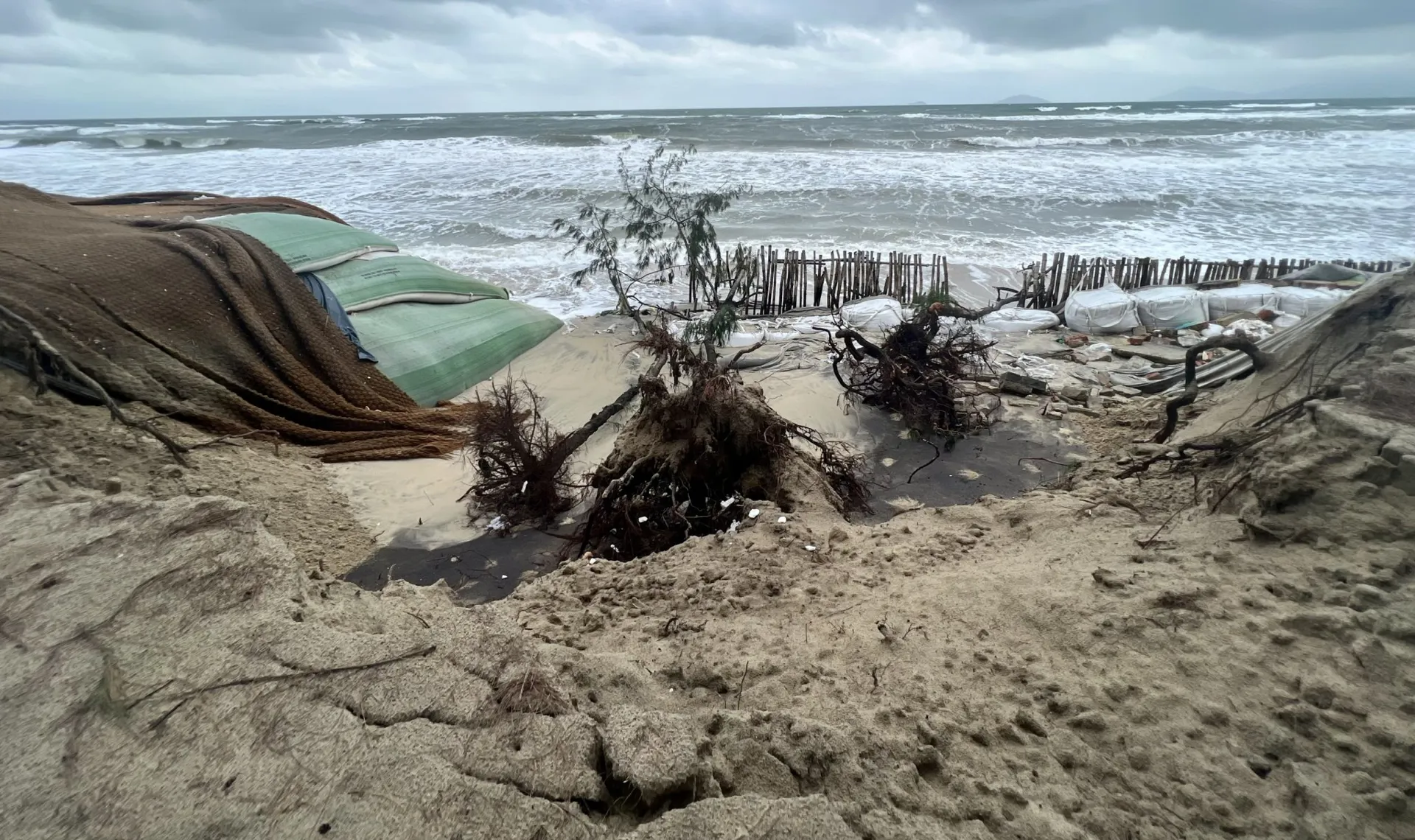 Nhiều đoạn sóng lớn đánh trôi chiều dài hơn 100m bờ biển Hội An, nước biển xâm thực sâu từ 7-10m, có nơi đến 25-30m. Một số đoạn dù đã được kè nhưng sóng biển vẫn đánh vỡ kết cấu bê tông, các vật liệu cùng đất đá bị cuốn trôi xuống biển.