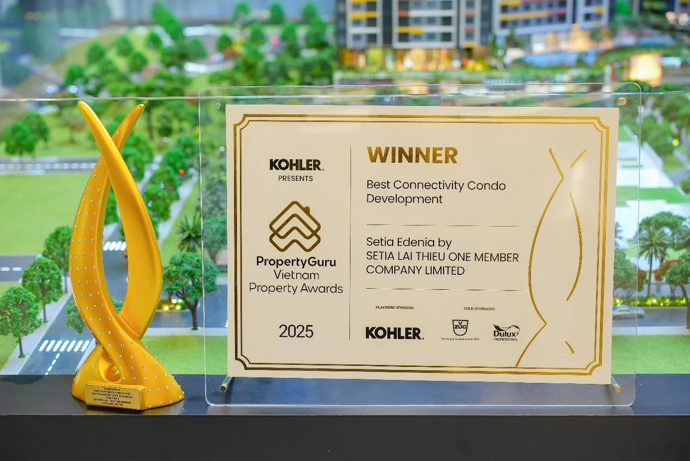 Chính năng lực kết nối “có một không hai” ấy đã giúp Setia Edenia được vinh danh tại PropertyGuru Vietnam Property Awards 2025, giải “Best Connectivity Condo Development - Dự án căn hộ có vị trí kết nối tốt nhất”, vừa ghi nhận vị thế chiến lược của dự án, vừa khẳng định uy tín quốc tế của chủ đầu tư S P Setia.