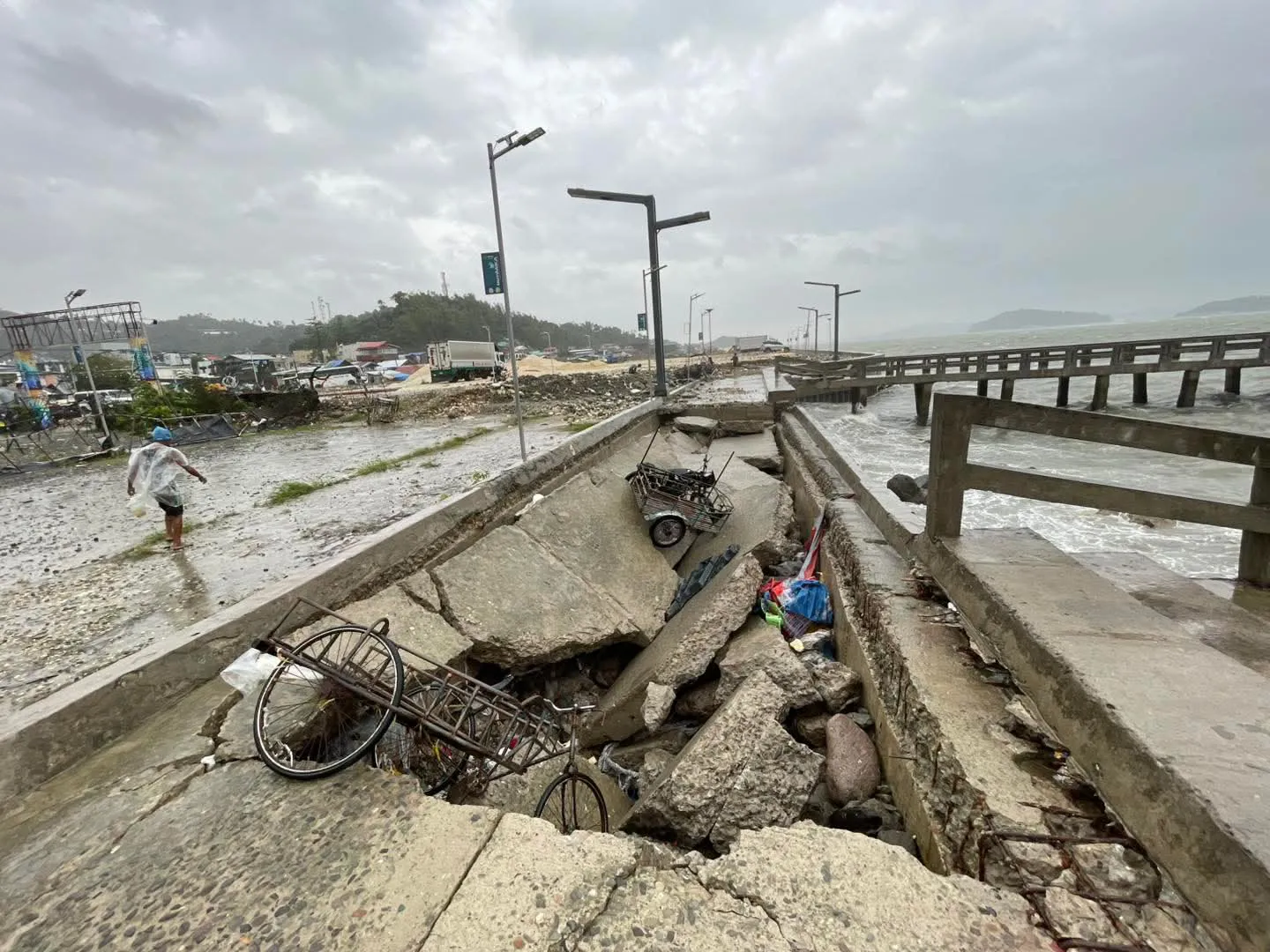 Một phần đê chắn sóng ở TP Catbalogan, tỉnh Samar đã bị hư hại sau khi siêu bão Fung-wong đổ bộ. Ảnh: Inquirer.net
