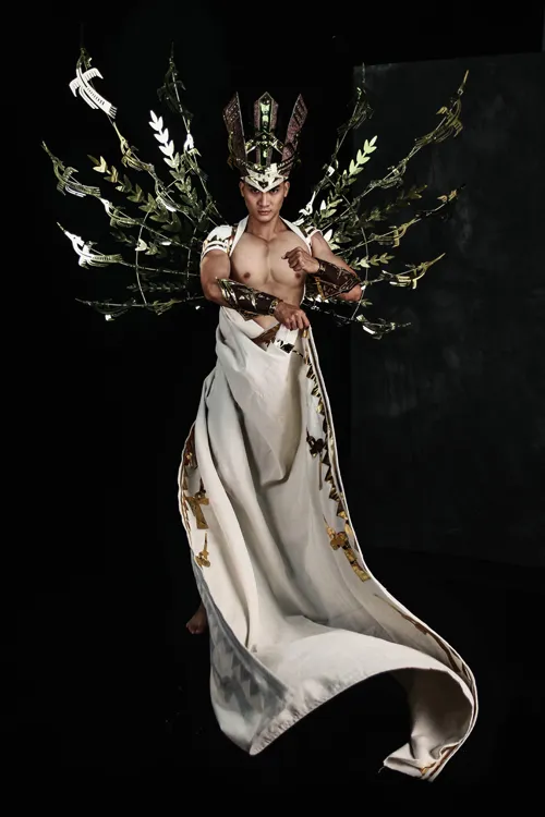 | Bộ trang phục dân tộc mang tên ''Hồn Đại Việt'' được Ivan Trần thiết kế cho Gia Huy tại cuộc thi năm nay. |
