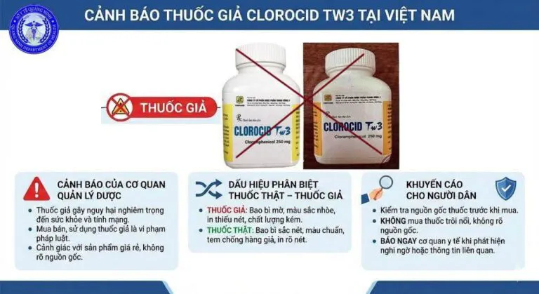 Sở Y tế Quảng Ninh cảnh báo thuốc kháng sinh giả Clorocid TW3