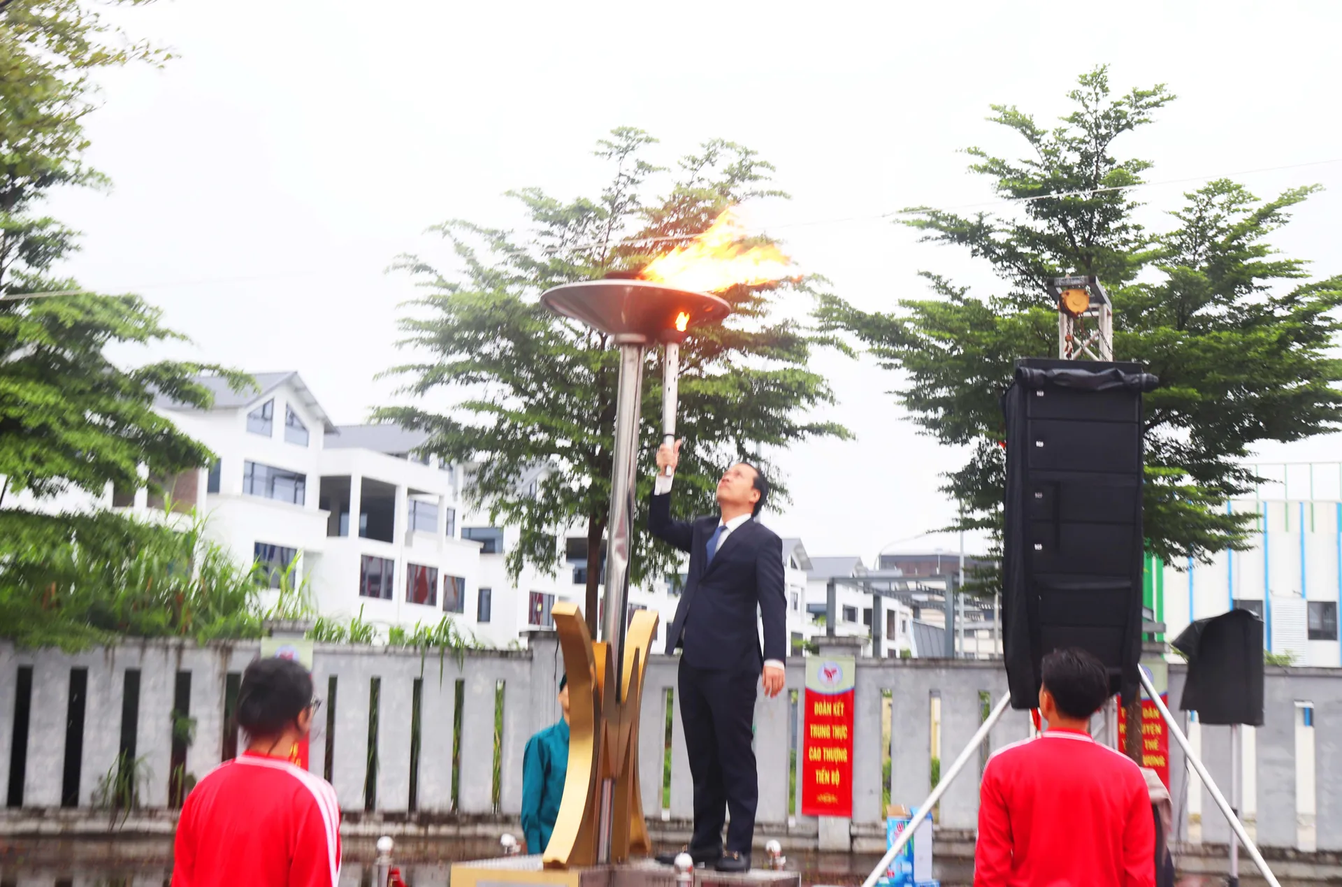 Bí thư Đảng ủy, Chủ tịch HĐND phường Đông Ngạc Ngô Văn Nam thắp sáng ngọn lửa truyền thống của Đại hội TDTT lần thứ I, năm 2025.