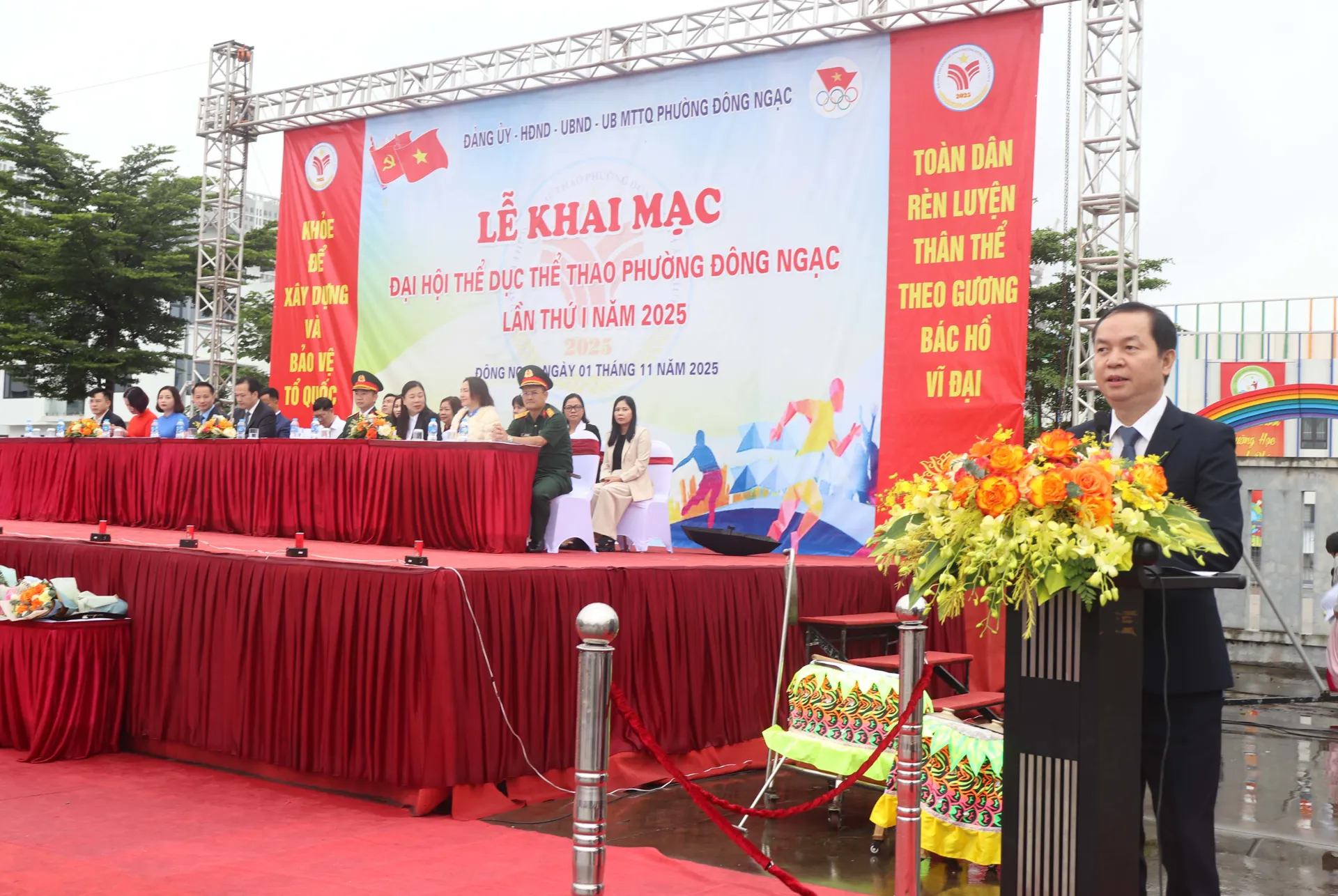 Phát biểu khai mạc Đại hội, Chủ tịch UBND phường Nguyễn Văn Hách nhấn mạnh, những năm qua, công tác TDTT quần chúng của phường Đông Ngạc luôn được Đảng ủy, chính quyền, MTTQ và các tổ chức chính trị, xã hội chỉ đạo sâu sát. Các phong trào “Toàn dân rèn luyện thân thể theo gương Bác Hồ vĩ đại”, “Khỏe để lập nghiệp và giữ nước” đã trở thành hoạt động thường xuyên, lan tỏa sâu rộng trong các khu dân cư, trường học, cơ quan, đơn vị.