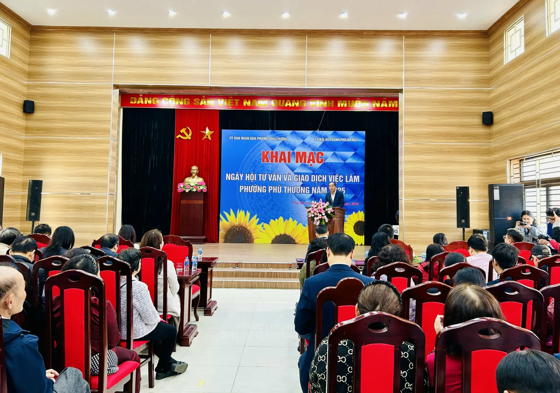 Các đại biểu dự Ngày hội Tư vấn và Giao dịch việc làm phường Phú Thượng năm 2025.