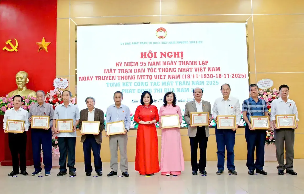 Kinhtedothi - Ngày 17/11, Ủy ban MTTQ Việt Nam phường Kim Liên tổ chức Hội nghị Kỷ niệm 95 năm Ngày thành lập Mặt trận dân tộc thống nhất Việt Nam, Ngày truyền thống MTTQ Việt Nam (18/11/1930 - 18/11/2025) và tổng kết công tác mặt trận năm 2025, phát động thi đua năm 2026.