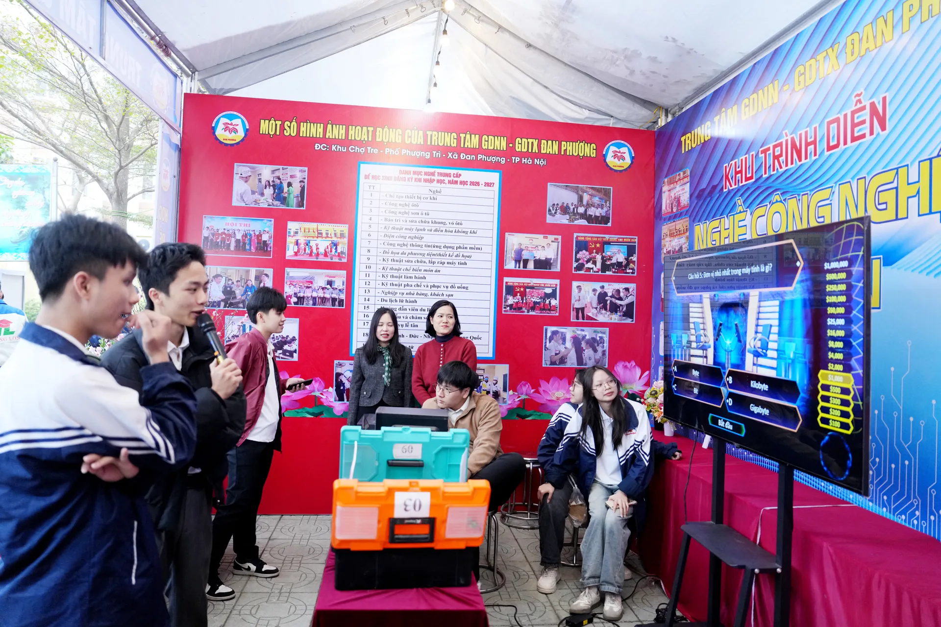 Các gian hàng tư vấn, hướng nghiệp cho học sinh.