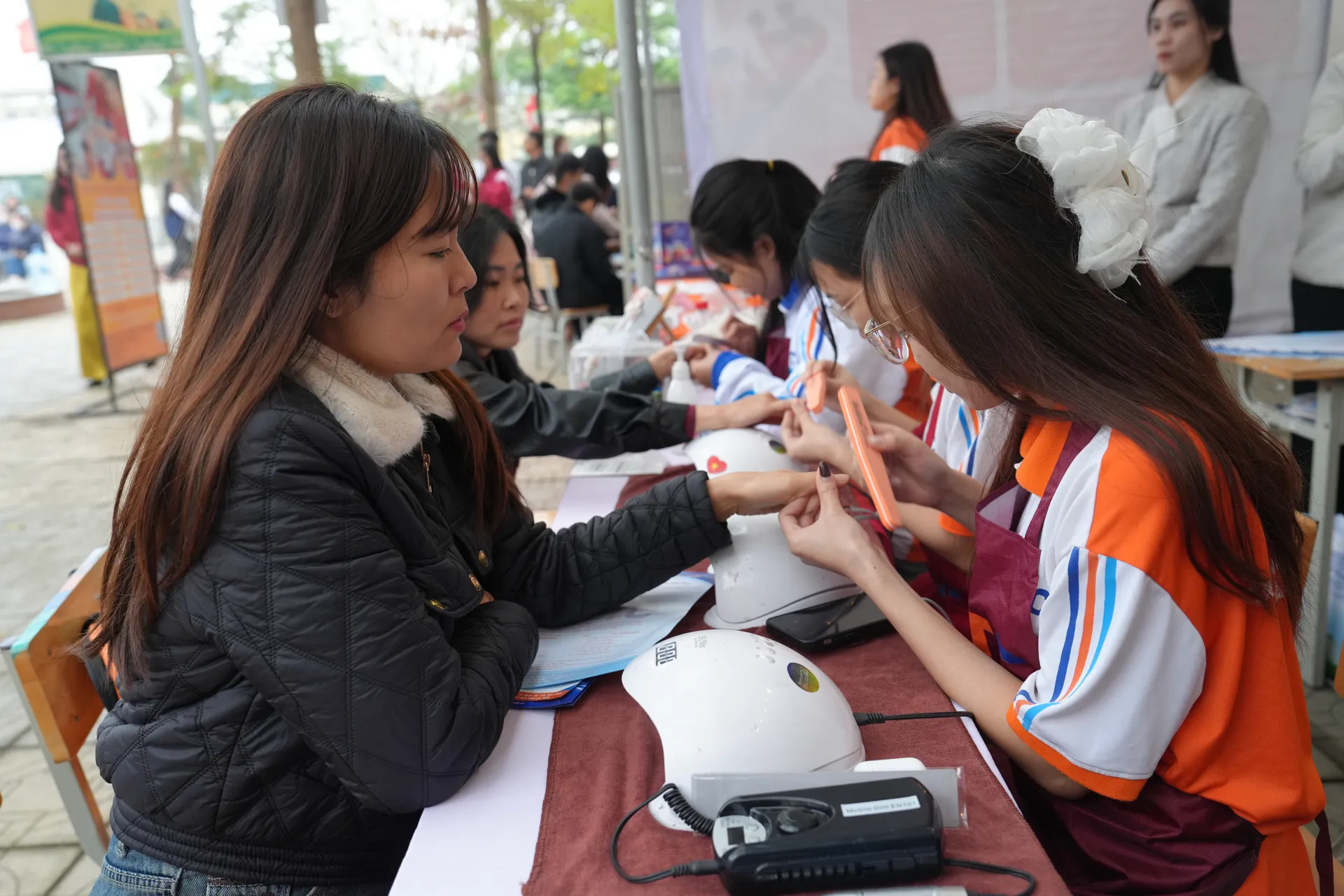 Gian hàng trình diễn nghề làm nail.