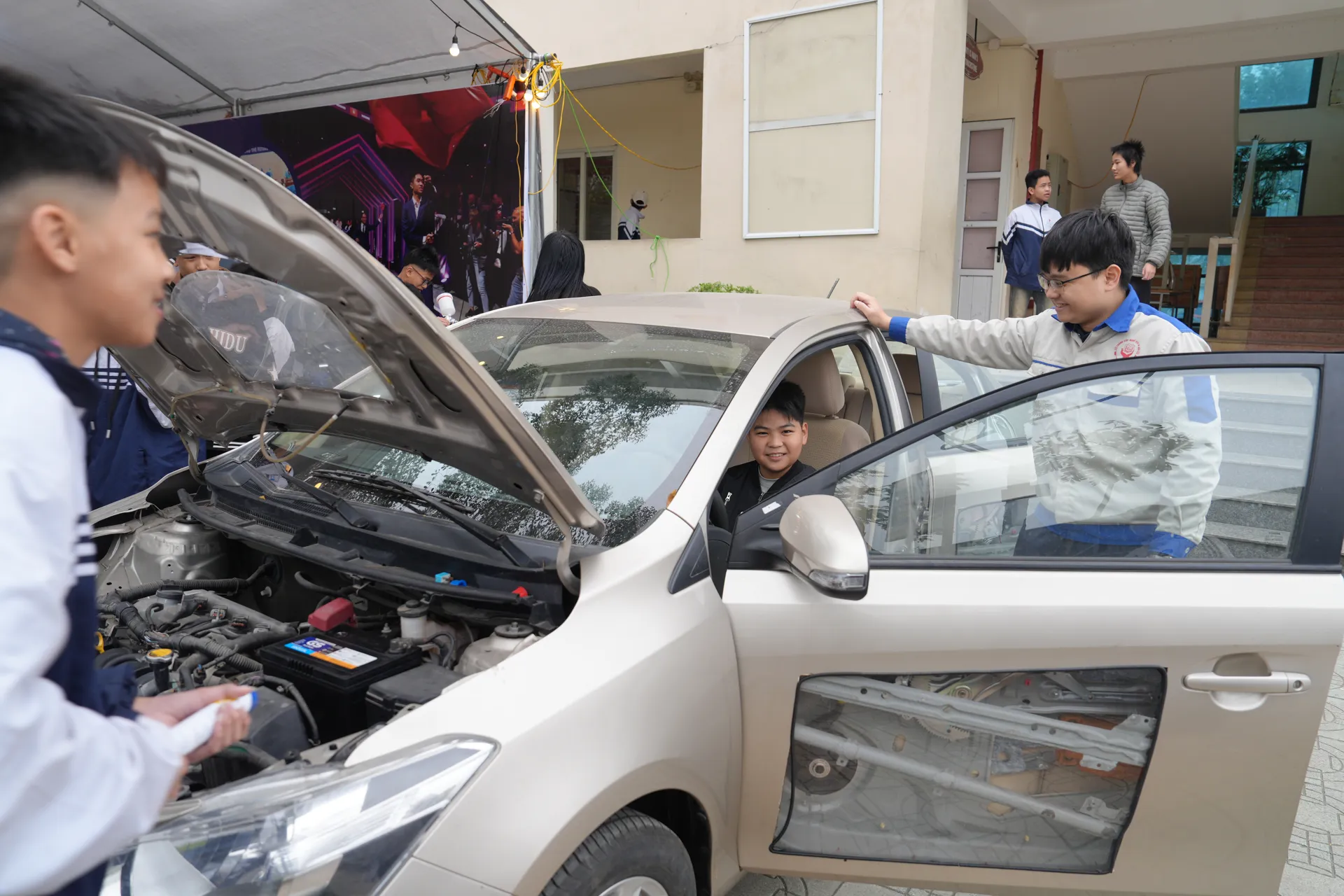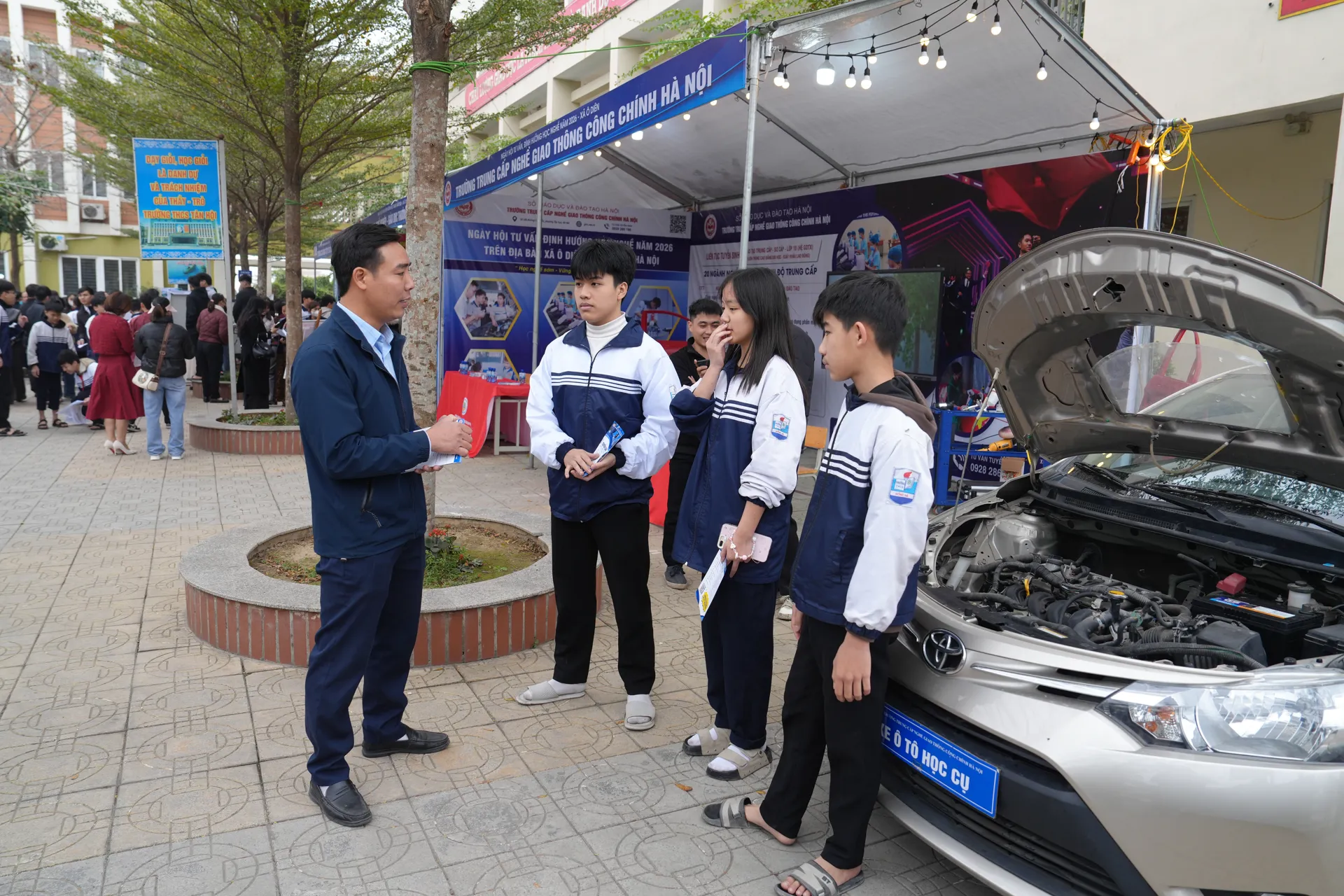 Tại gian hàng của Trường Trung cấp nghề giao thông công chính Hà Nội có mô hình ô tô học cụ để học sinh có thể khám phá, trải nghiệm quy trình học nghề sửa chữa ô tô nên thu hút rất đông học sinh. Trao đổi với Kinh tế & Đô thị, Phó trưởng Khoa Công nghệ ô tô (Trường Trung cấp nghề giao thông công chính Hà Nội) Trần Văn Chinh cho biết, trường đào tạo cả cấp THPT và trung cấp nghề. Trong đó hiện nay, nhà trường đanmg đào tại 20 ngành nghề trình độ trung cấp như công nghệ ô tô, công nghệ sơn ô tô, hàn, điện tử công nghiệp, quản trị khách sạn, ngoại ngữ, công nghệ thông tin… với quy mô hơn 1.000 học sinh mỗi năm.