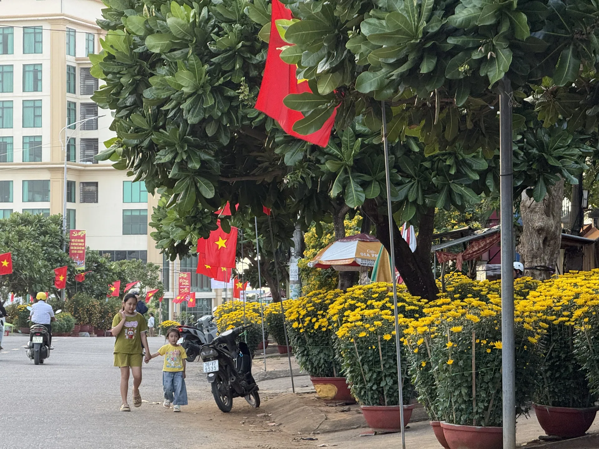 Trên khắp các con đường ở Lý Sơn, nhà nhà đều đang chuẩn bị đón Tết. Người chở hoa đặt trước sân, người tỉa lại cây cối, người quét dọn lối đi. Dưới nắng cuối năm, màu xanh của lá, màu vàng của hoa nổi lên rực rỡ. Không khí Tết không đến ào ạt, mà chậm rãi thấm vào từng góc nhỏ của đảo.