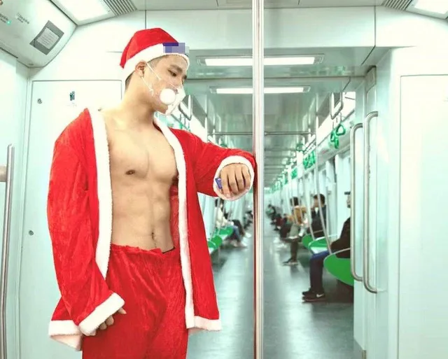 Theo đó, khoảng 9 giờ sáng ngày 10/12, khi bước lên tàu ở ga Vành đai 3, cả nhóm thanh niên còn mặc đầy đủ quần áo với trang phục ông già Noel. Sau khi lên tàu, do vào giờ thấp điểm nên họ bất ngờ cởi áo và đứng dàn hàng chụp ảnh.