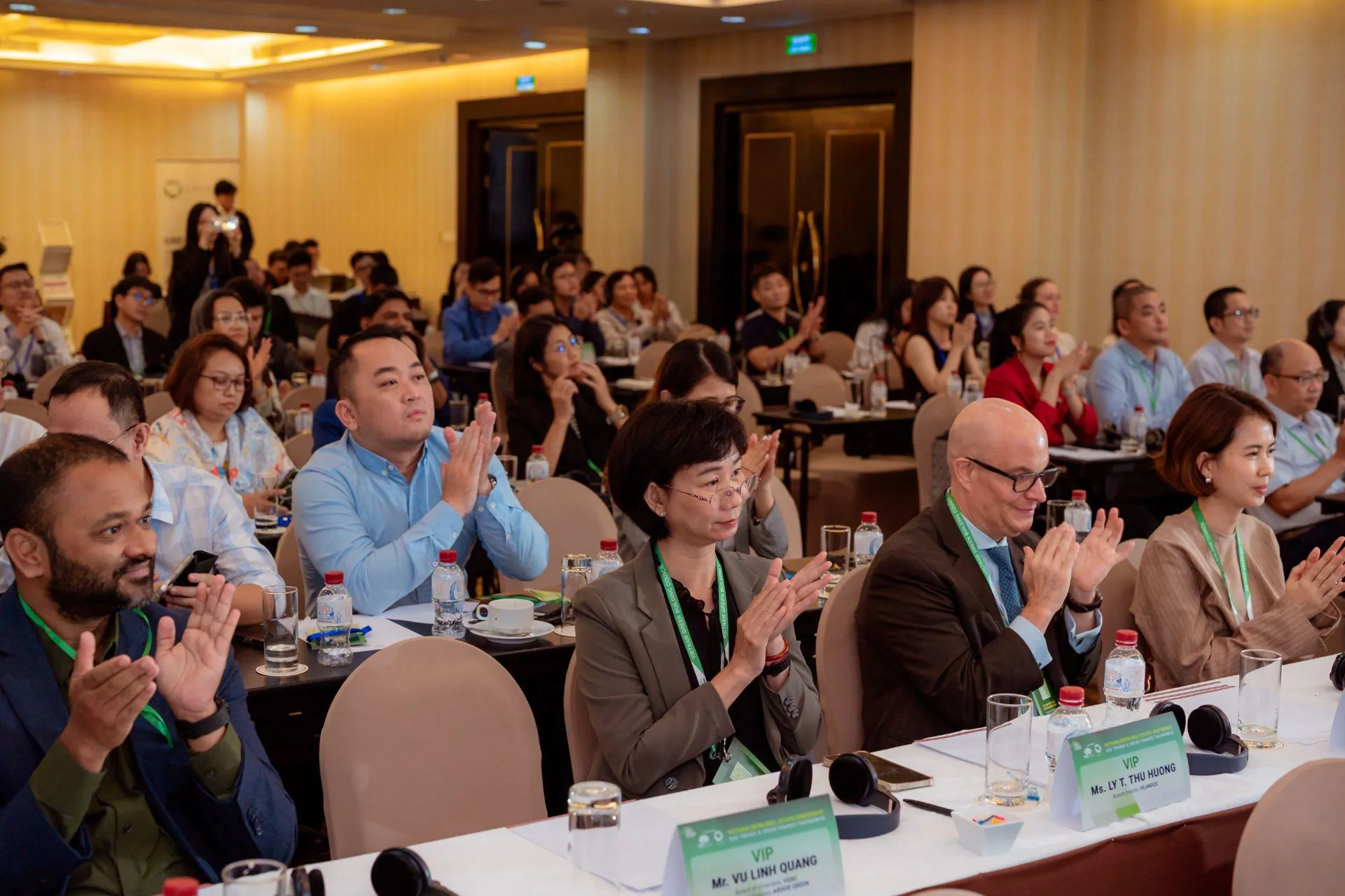 Các khách mời lắng nghe chia sẻ chuyên sâu về cơ hội đầu tư xanh và chiến lược ESG trong lĩnh vực bất động sản.