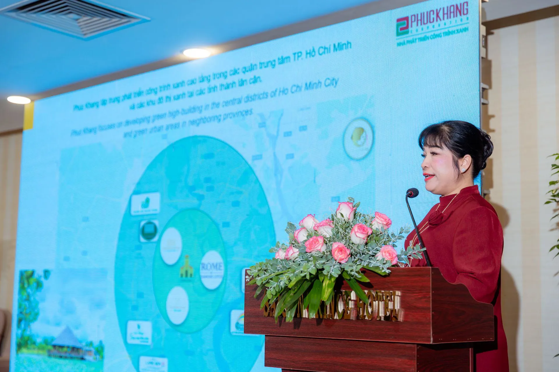 Bà Lưu Thị Thanh Mẫu – CEO Phuc Khang Corporation chia sẻ lộ trình phát triển dự án bền vững, hướng tới Net Zero.