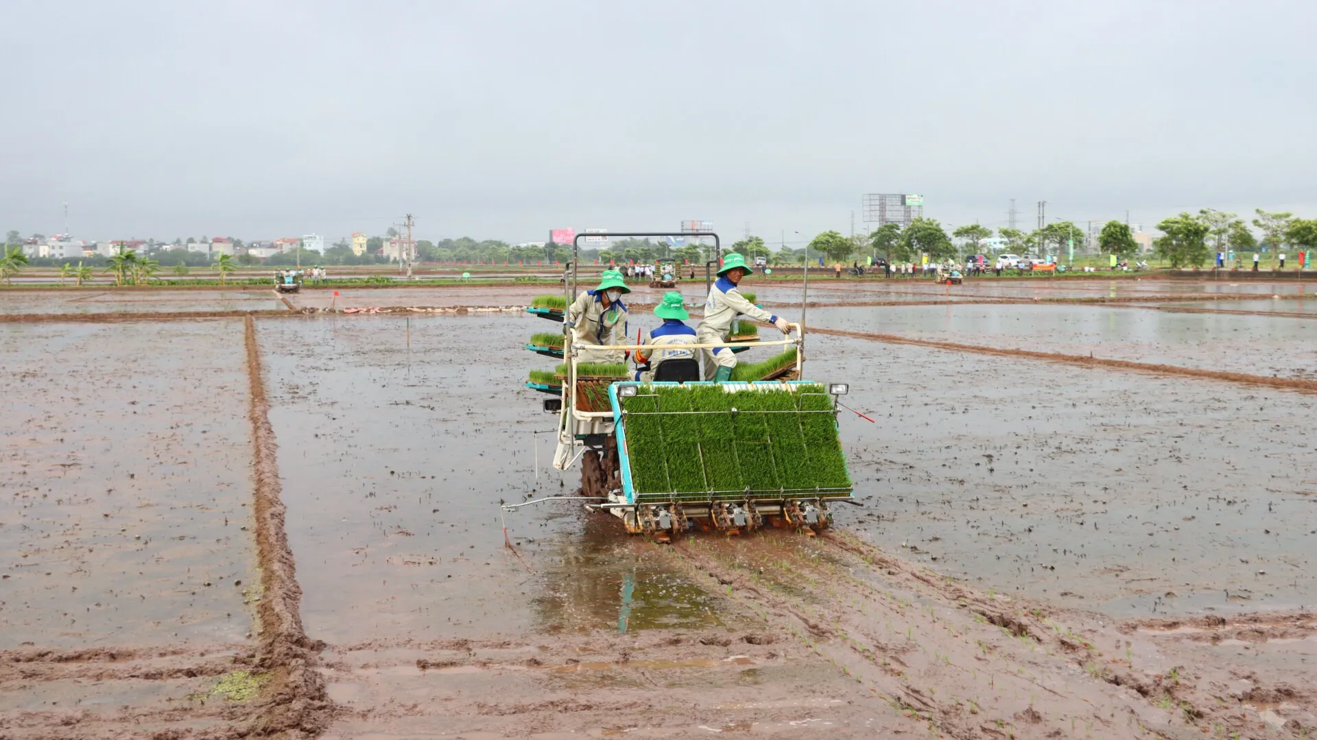 Mô hình mạ khay, cấy máy được ứng dụng ngày một phổ biến tại Hà Nội.