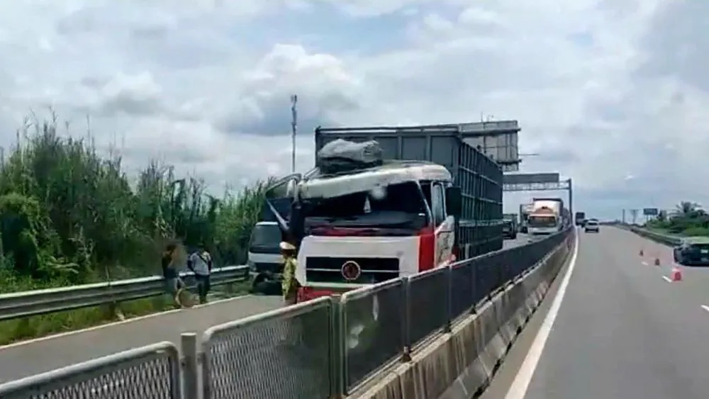 2 xe tải va chạm trên cao tốc Trung Lương - Mỹ Thuận