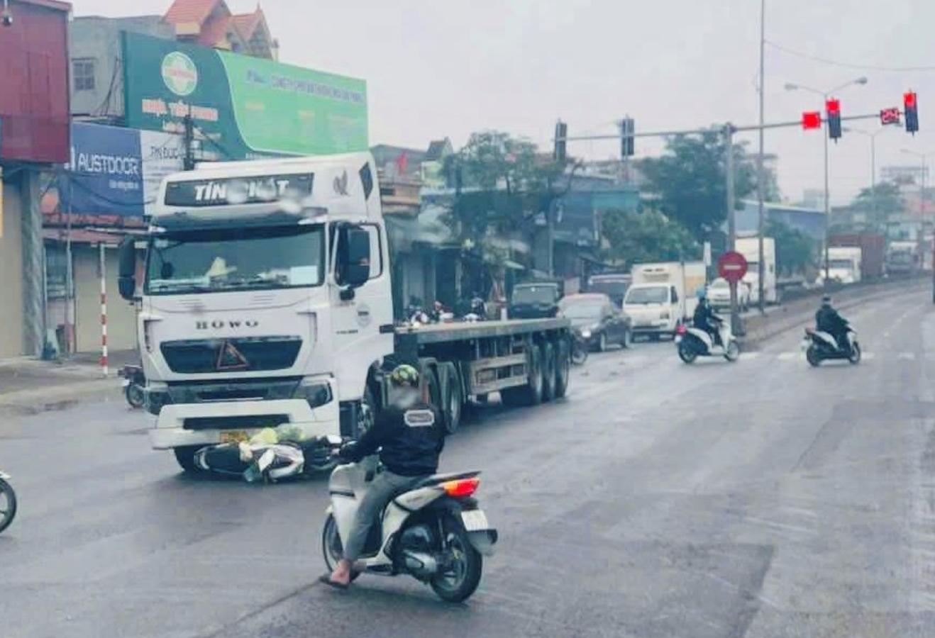Vào khoảng 8 giờ ngày 2/12, tại km95+550 quốc lộ 5 chiều Hà Nội - Hải Phòng (đoạn ngã ba khu PG An Đồng, phường An Hải, TP Hải Phòng) đã xảy ra vụ tai nạn giao thông giữa xe đầu kéo container và xe máy.
