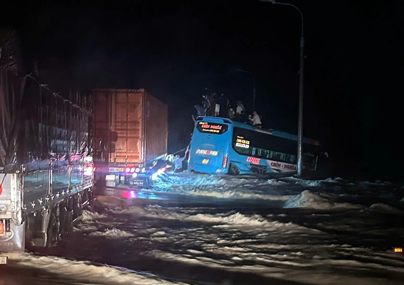Chiếc xe khách bị lũ cuốn trên quốc lộ 1