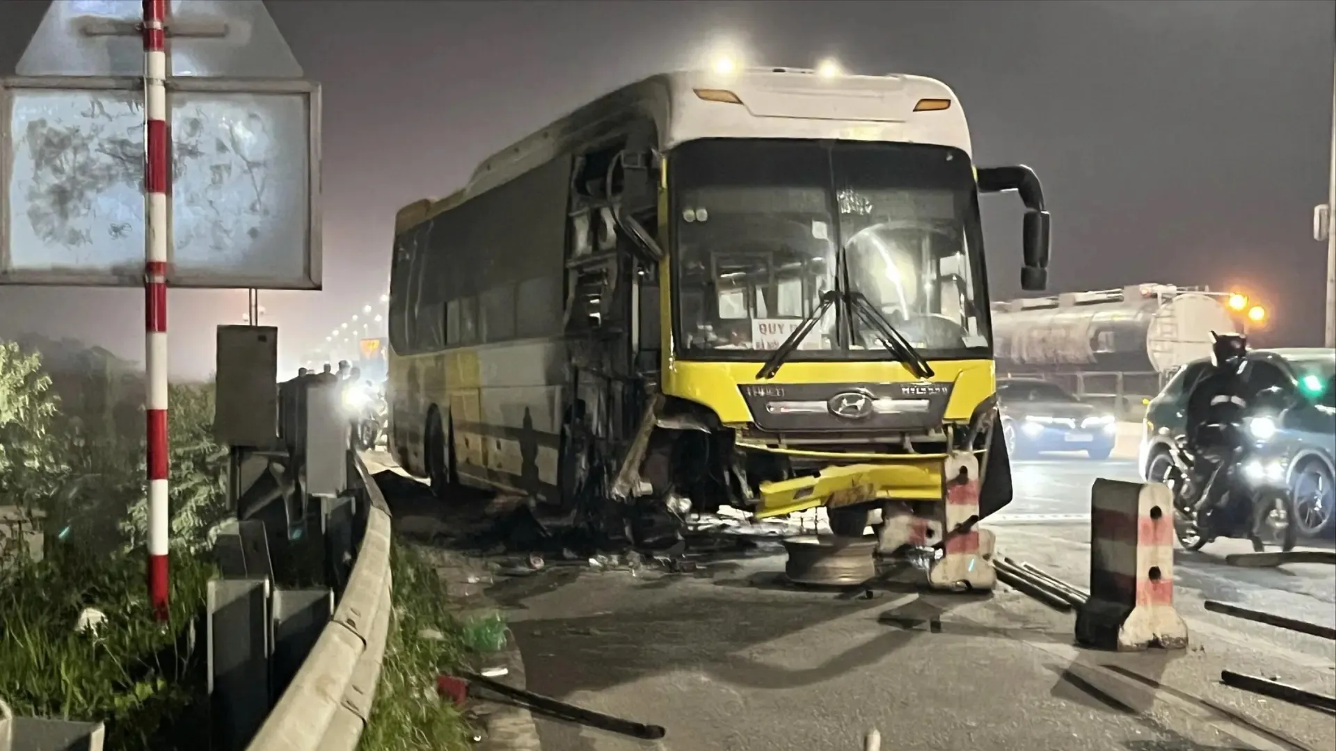 Sau khi tông trúng xe máy, ô tô khách tiếp tục trượt dài, va mạnh vào lan can cầu rồi bốc cháy. Người dân sống gần khu vực cùng lực lượng chức năng đã nhanh chóng mang bình chữa cháy tới hỗ trợ, dập tắt ngọn lửa trước khi lan rộng.