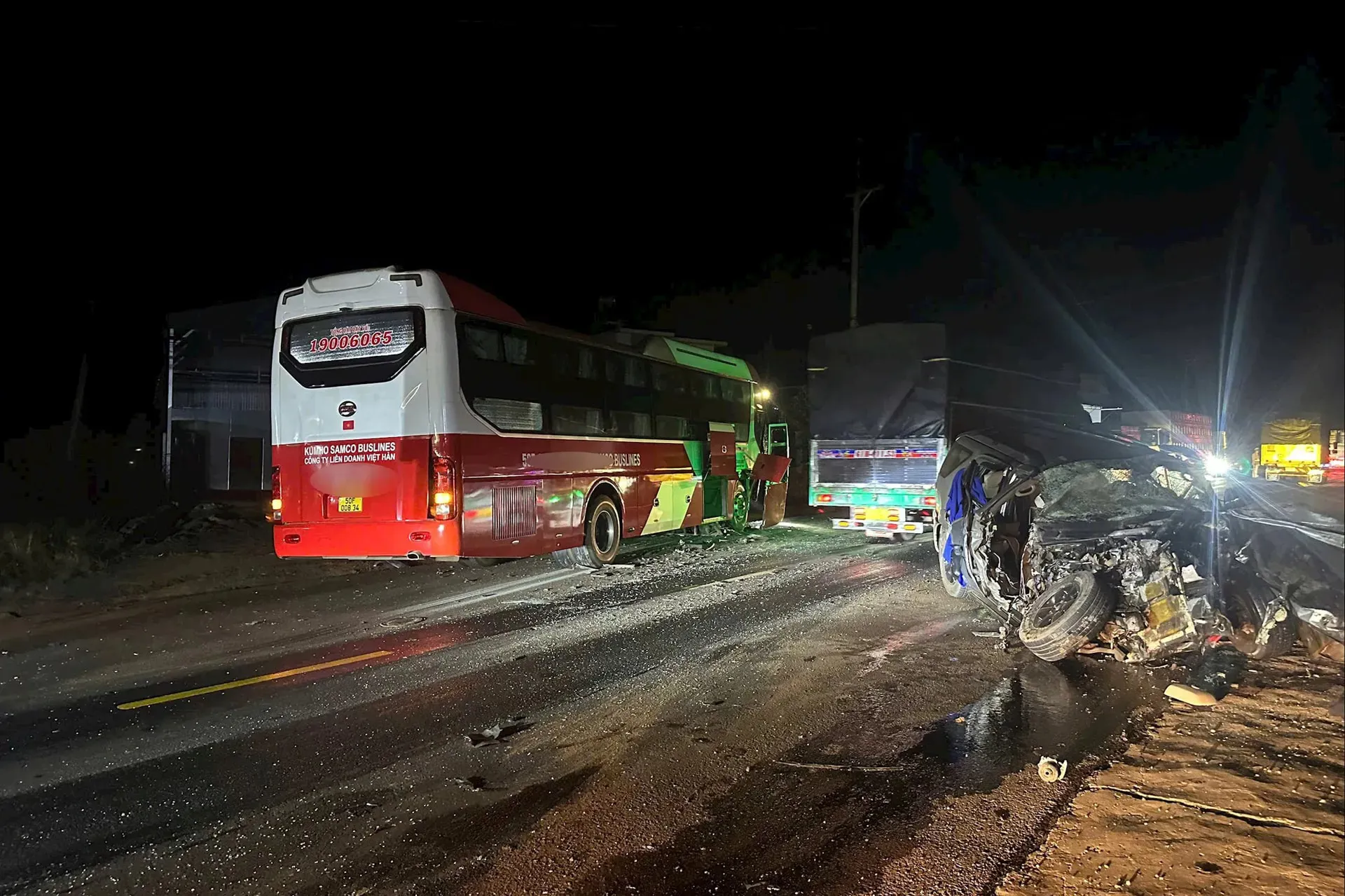 Xe khách va chạm ô tô con khiến 3 người thương vong