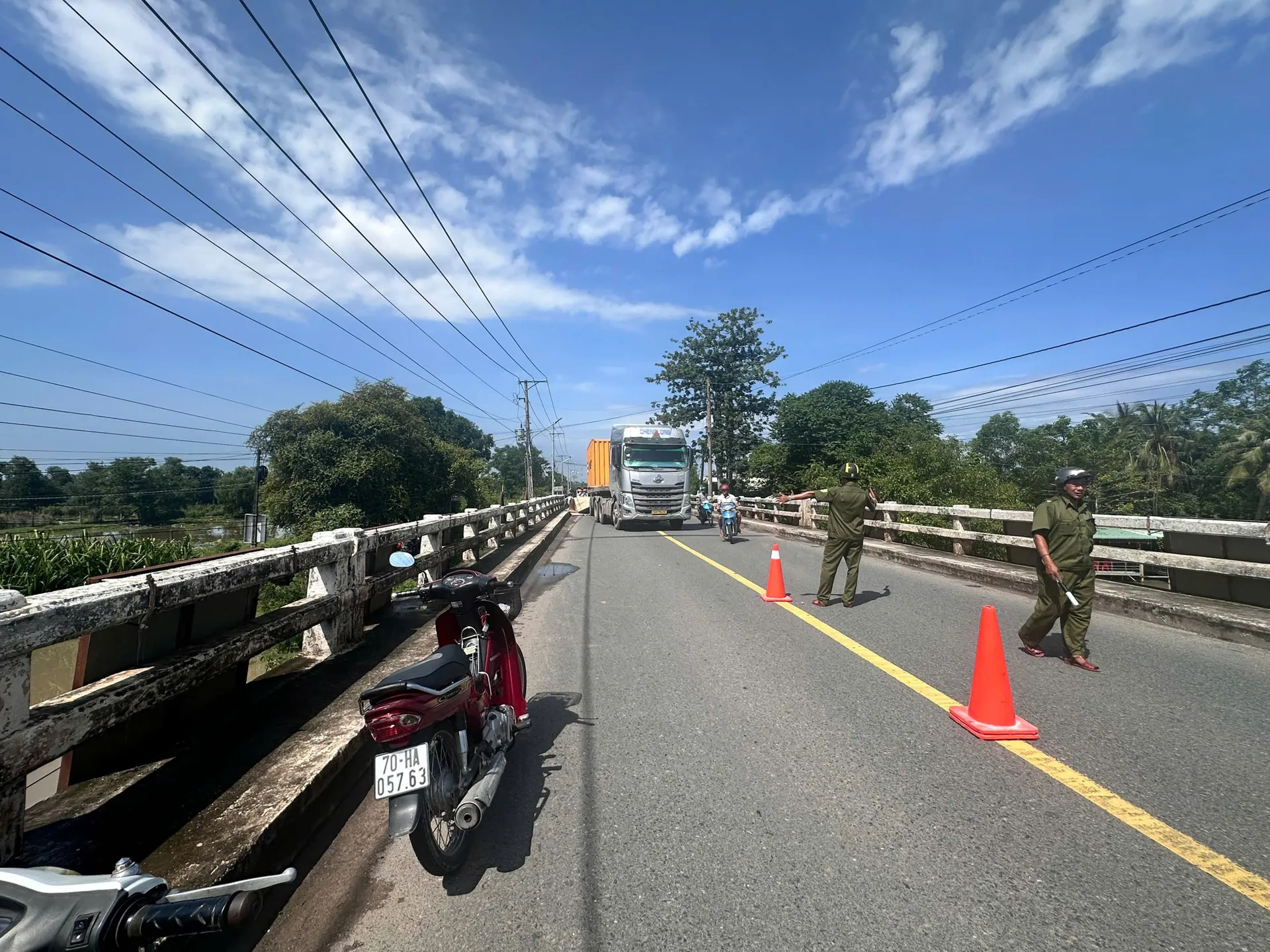 Thời điểm này, xe container kéo theo rơ moóc di chuyển trên quốc lộ 22B theo hướng từ ngã tư đường ĐT.786 về hướng ngã ba đường 30/4, khi lên cầu Hiệp Hòa thuộc địa bàn khu phố Hiệp Tân, phường Thanh Điền, tỉnh Tây Ninh thì va chạm với xe máy đang chạy cùng chiều phía bên phải.
