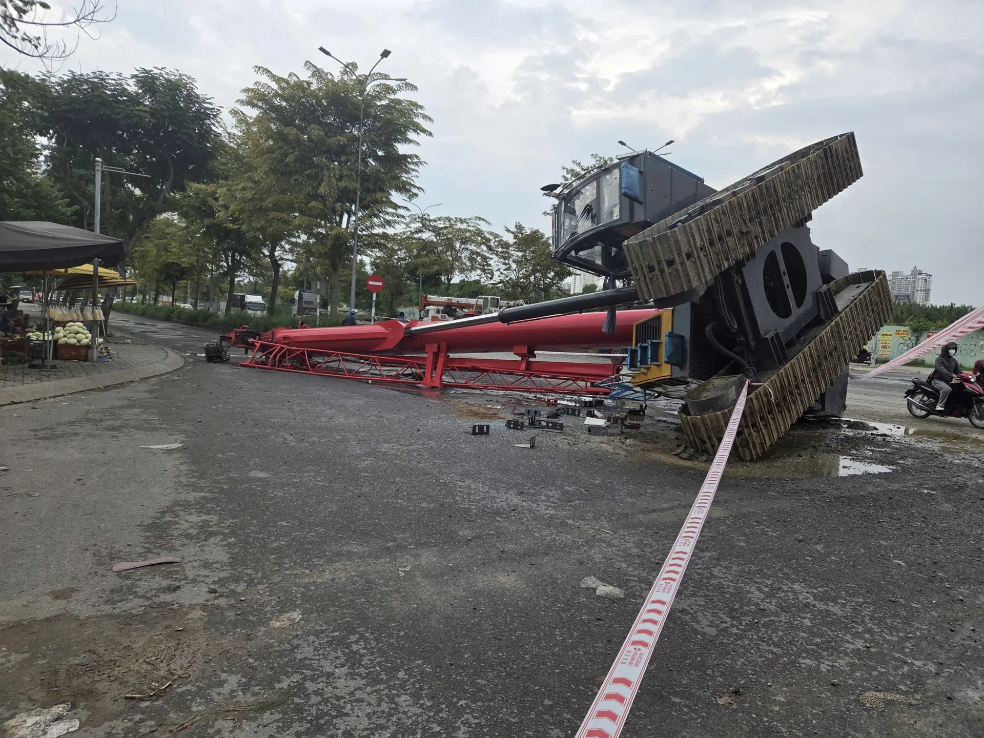 Khoảng 12 giờ 30 ngày 5/11, nam tài xế lái xe tải kéo theo rơ-moóc chở theo xe cần cẩu chạy trên đường 15B (Nguyễn Lương Bằng nối dài, phường Tân Mỹ, TP Hồ Chí Minh). Khi đang rẽ vào công trình xây dựng trên đường này thì dây xích chằng buộc xe cần cẩu trên rơ-moóc bất ngờ bị đứt, đổ xuống đường.