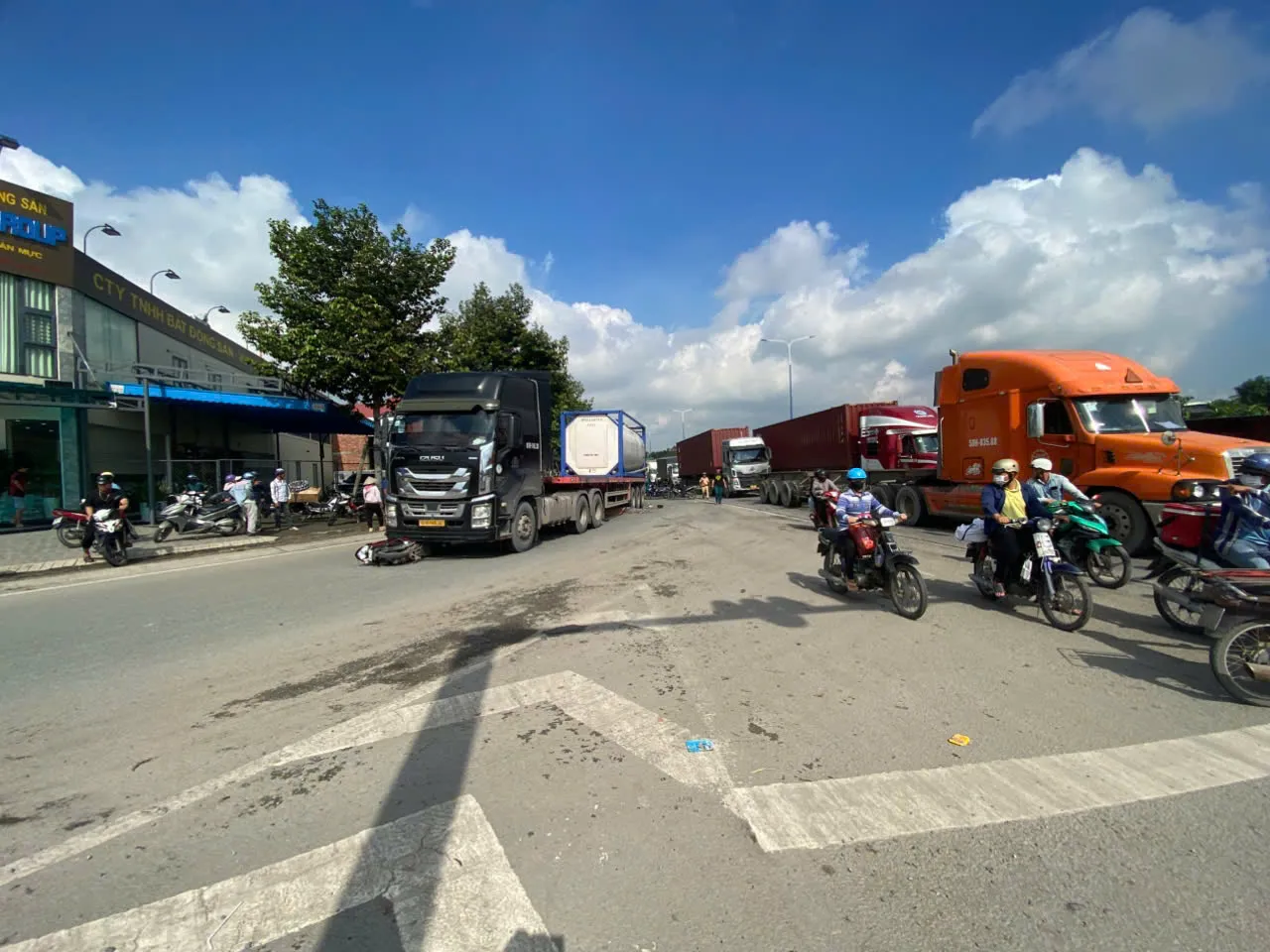 Đội CSGT Cát Lái cho biết, khoảng 8 giờ 30 phút cùng ngày, xe đầu kéo mang biển số 61H - 145... lưu thông trên đường Mỹ Phước - Tân Vạn (hướng từ ngã tư An Phú đi Quốc lộ 1K), khi đi đến đoạn giao với Quốc lộ 1K (phường Tân Đông Hiệp), tài xế cho xe rẽ phải vào Quốc lộ 1K.