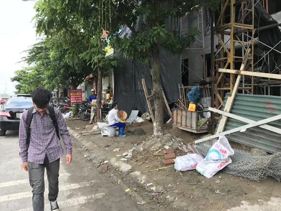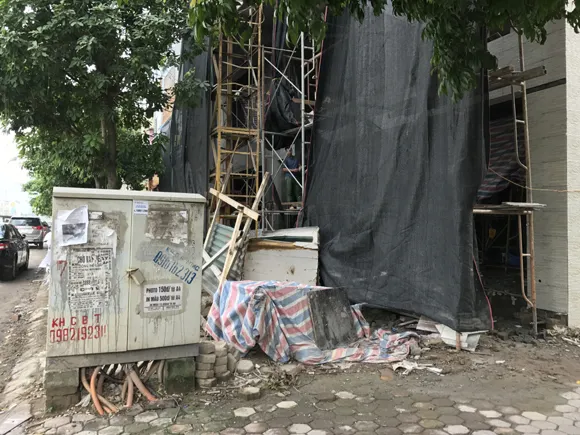 Tuy nhiên, theo ghi nhận thì không chỉ làm nơi tập kết vật liệu mà chủ đầu tư đã phá nát toàn bộ vỉa hè trước cửa công trình, lắp đặt vận thang, chặn kín lối đi của người dân. Hơn nữa vi phạm còn ngang nhiên kéo dài nhiều tháng mà đến nay vẫn chưa bị cơ quan chức năng địa phương xử lý gì.