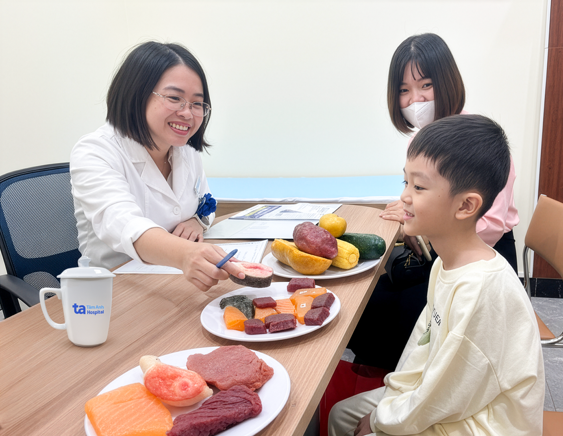 ThS.BS Hoàng Thị Hằng, Phòng khám Đa khoa Tâm Anh Cầu Giấy, tư vấn chế độ dinh dưỡng và phát triển thể chất lành mạnh cho bé Gia Khánh.