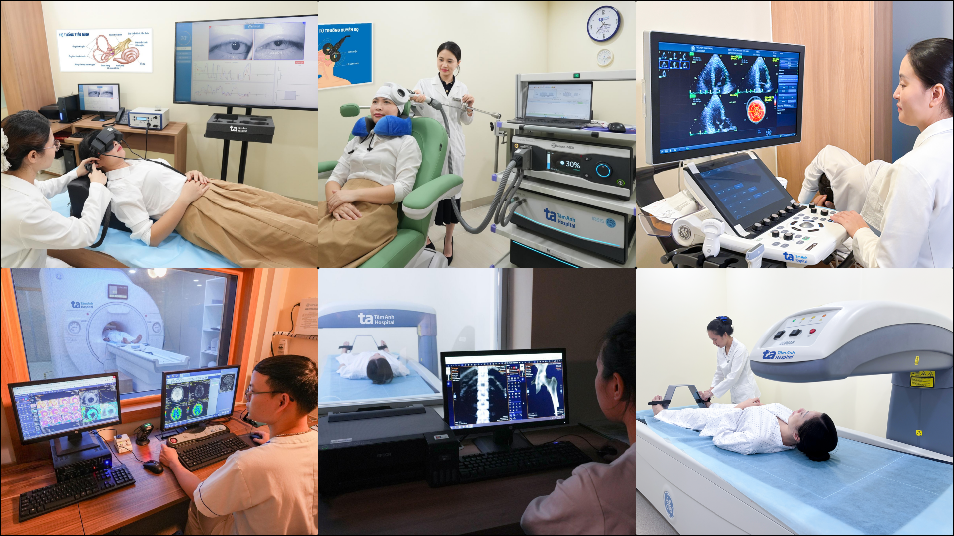 Bên cạnh hệ thống siêu âm 4D Voluson Signature 18 tiên tiến nhất, ở chuyên khoa Tai Mũi Họng và Thần kinh, Phòng khám Đa khoa Tâm Anh Cầu Giấy cũng là một trong những nơi đầu tiên ở Hà Nội trang bị hệ thống VNG 525 và EyeSeeCam vHIT - thiết bị hiện đại hàng đầu của hãng Interacoustics (Đan Mạch). 2 công nghệ này giúp phát hiện sớm rối loạn tiền đình, chóng mặt, mất thăng bằng thông qua việc ghi lại chuyển động mắt và phản xạ đầu - mắt. Nhờ đó, bác sĩ xác định chính xác nguyên nhân gây chóng mặt, giúp người bệnh được điều trị đúng hướng và hồi phục nhanh hơn.