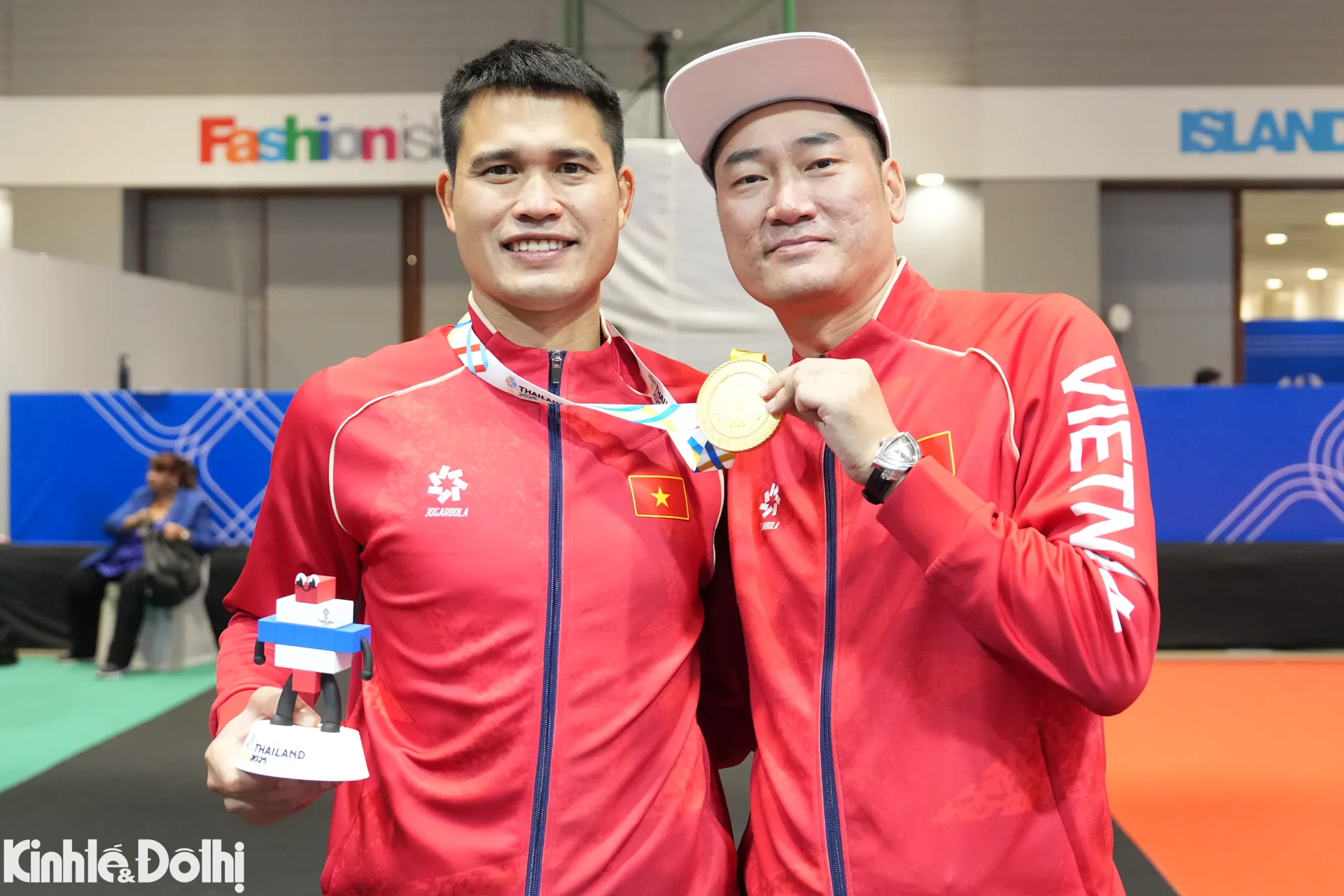 Kiếm thủ Nguyễn Xuân Lợi và HLV Nguyễn Lê Bá Quang tại SEA Games 33.