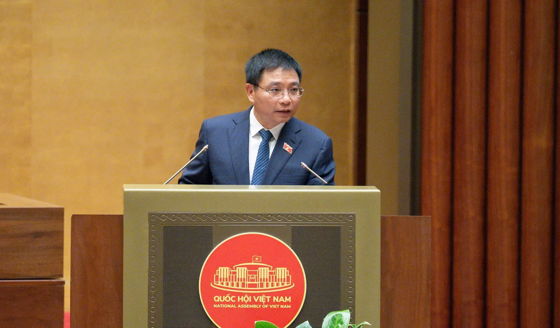 Bộ trưởng Bộ Tài chính Nguyễn Văn Thắng trình bày tờ trình. Ảnh: Quochoi.vn
