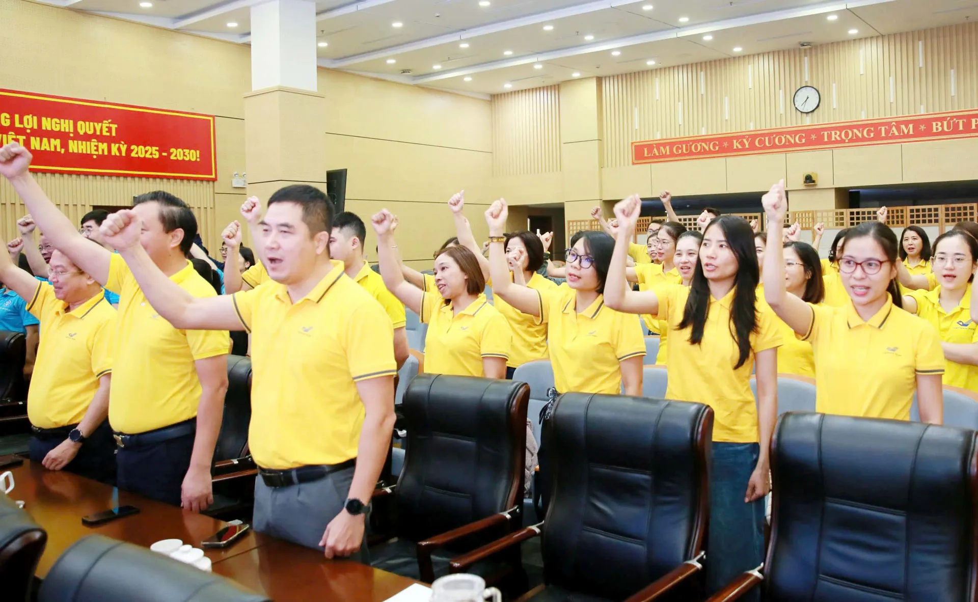 Lãnh đạo, cán bộ BHXH Hà Nội và Tổng công ty Bưu điện Việt Nam (Vietnam Post) thể hiện quyết tâm phấn đấu vượt mục tiêu chiến dịch.
